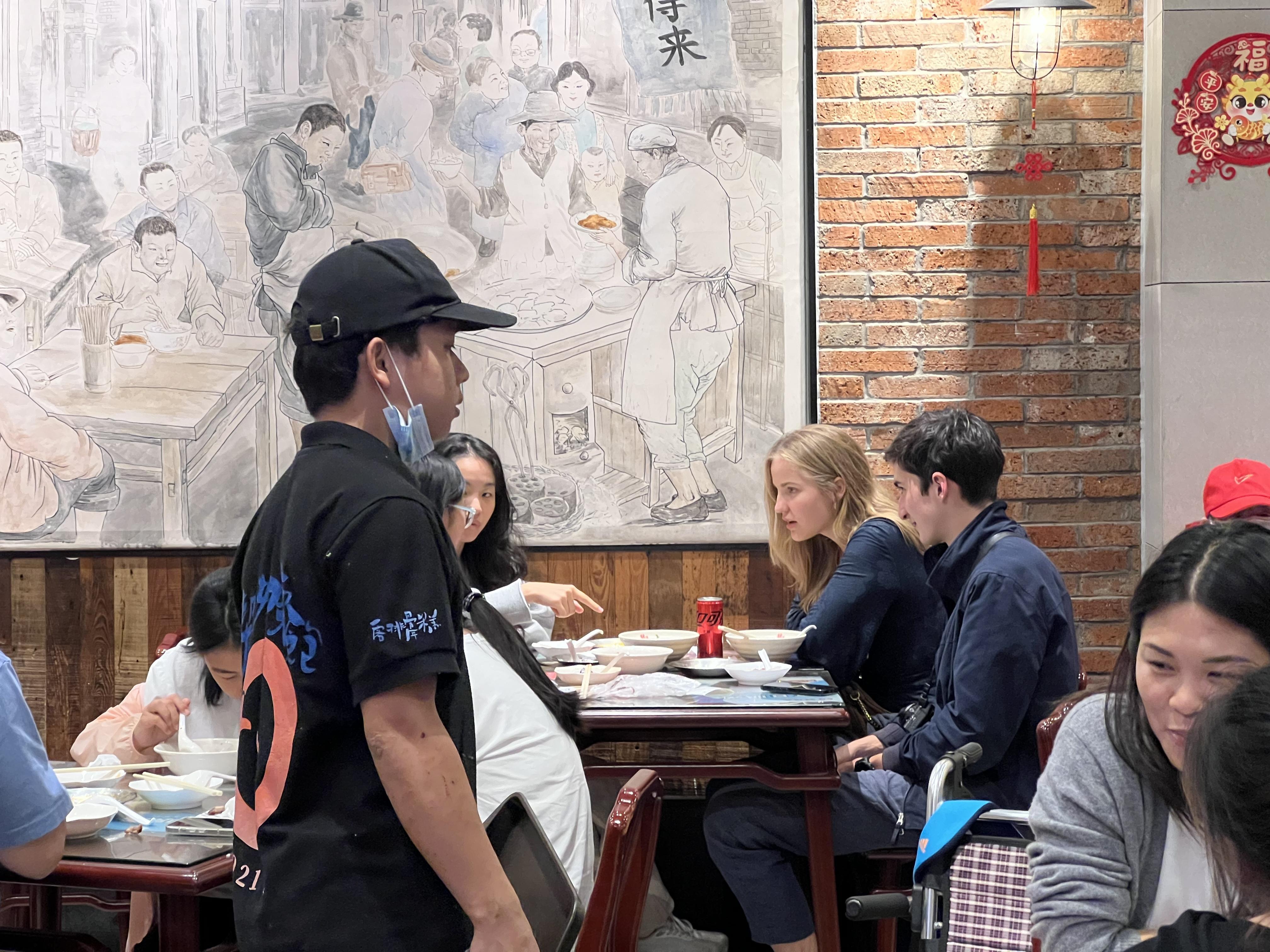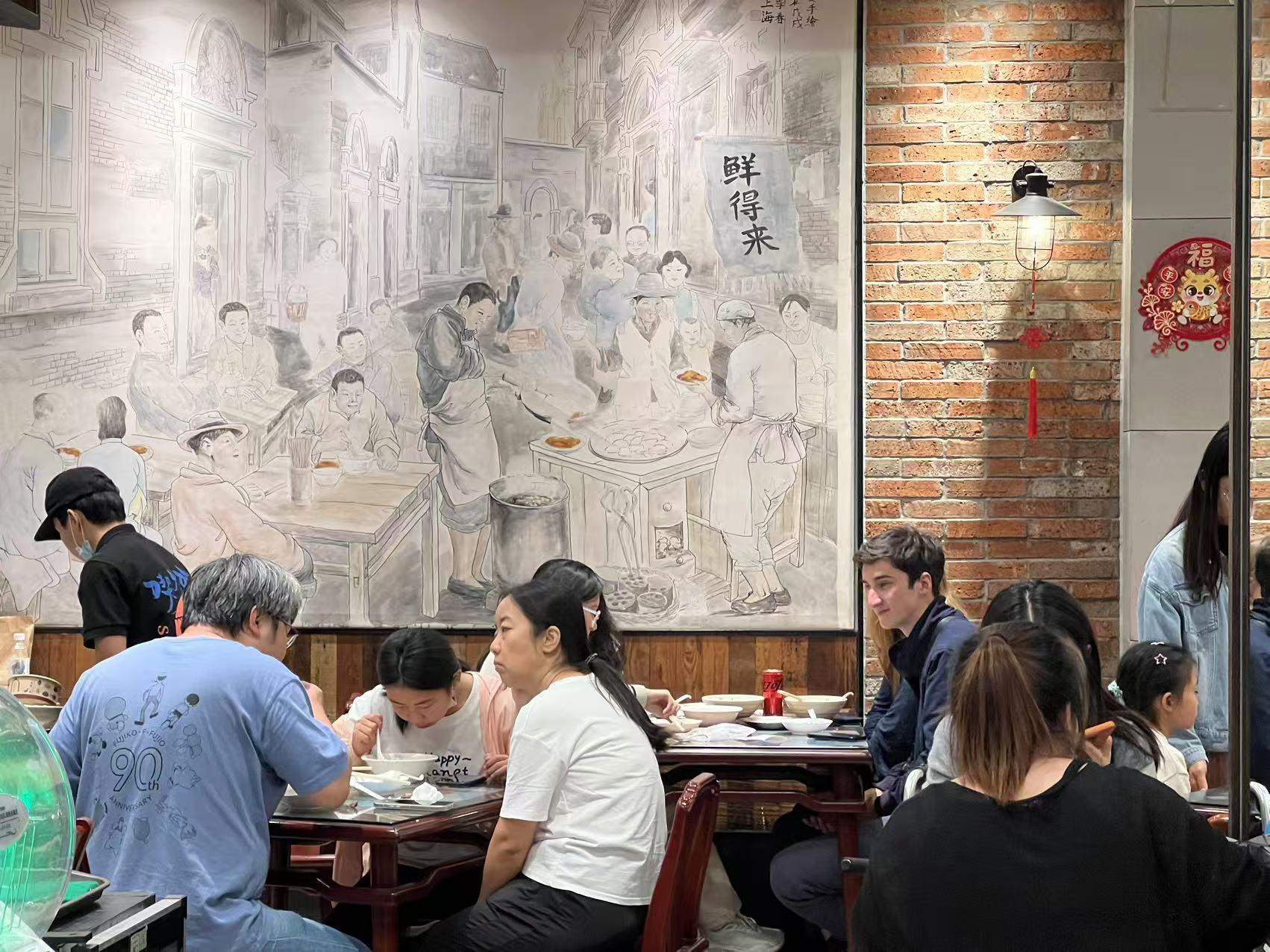 此外,还有不少本地市民也前来凑热闹。张老伯感慨地说:“我以前住在云南路附近,下班后常来这里品尝排骨年糕和单档汤,那是我的一段美好回忆。后来搬到郊区后,我一直想带孙子来体验一下。没想到今天这么多人,但老字号的韵味依旧。”