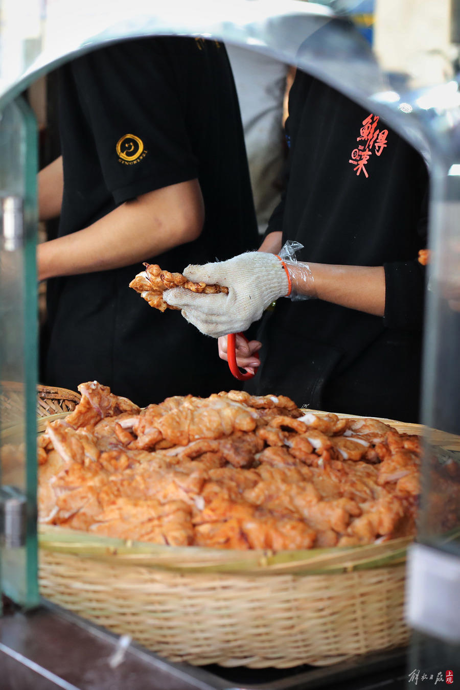 “国庆期间,我们的生意异常火爆。”鲜得来相关负责人表示,“不仅云南路总店人气爆棚,每天都达到顶格业绩,南京路周边的山西路店也表现出色,销售额直线上升,创下了历史新高。在这样的繁忙时刻,我们更是坚持严格按照标准流程进行烹饪。以炸排骨为例,我们会在油温达到200摄氏度时,将浆好的排骨平放入锅,用熟练的手法让排骨均匀受热。炸完30秒后迅速捞出修剪备用,最后在250摄氏度的高温下复炸20秒,这样才能炸出一块外酥里嫩的排骨,让每一位顾客都能品尝到最正宗的味道。”
