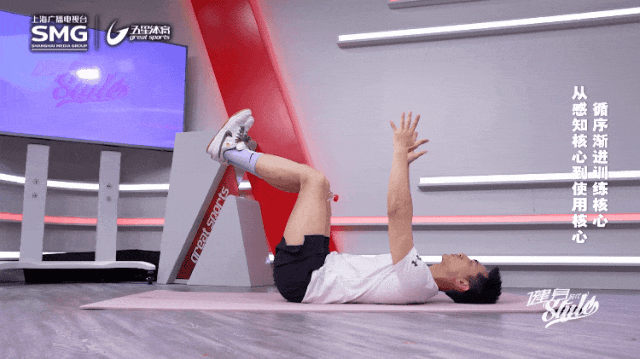 动作要点:死虫动作如其名,像一只死掉的小虫子一样平躺在地面上,四脚朝天。平躺的时候,保证下背部能够有“去紧贴地面”的意识就可以了。如果这对你来说很简单,第二步可以找一个枕头或小球,夹在双腿的内侧,让你的内收肌参与发力。期间尽量用鼻子呼气和吐气,感受下腹部的气将它顶起又落下的感觉。30秒做2-3组。