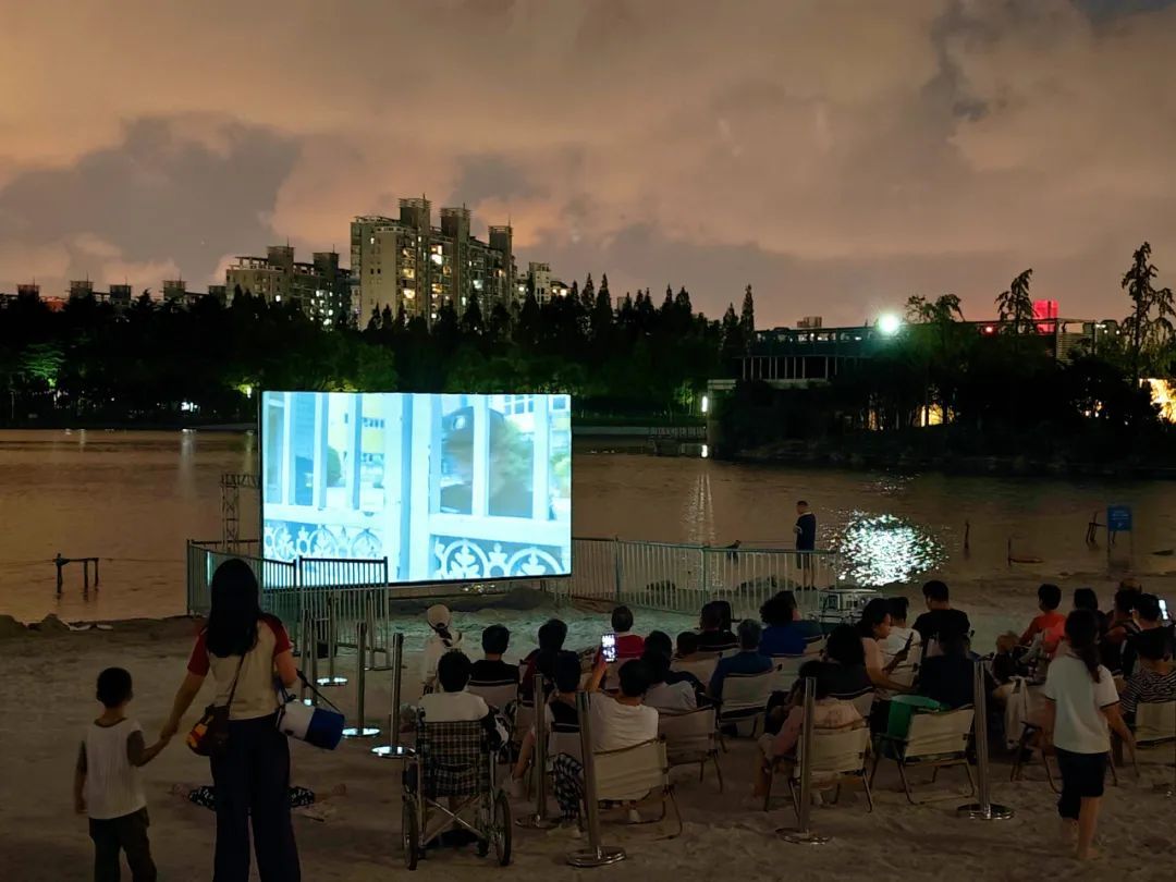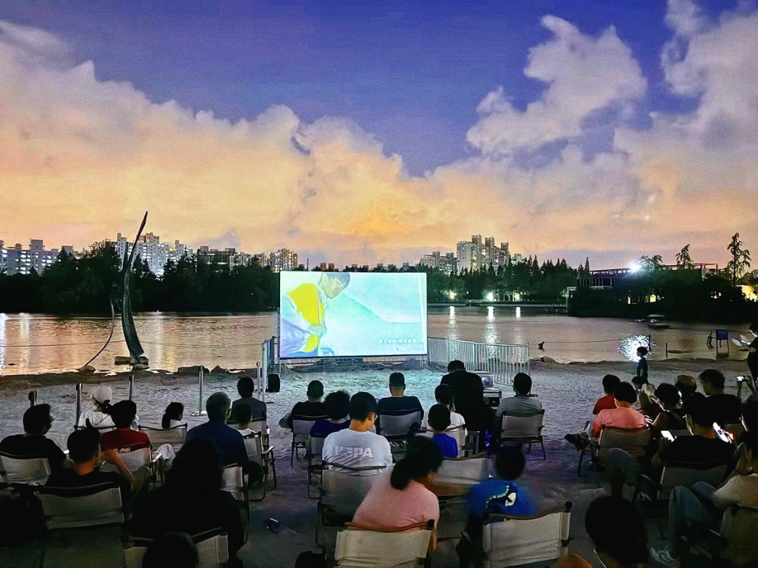 自9月30日起,大宁公园在白沙滩上举行公益露天电影活动,从《独行月球》,到《飞驰人生2》,再到《奇迹笨小孩》《人生路不熟》……大宁公园以山水景观为放映厅,以整片白沙滩为座席,为市民游客们带来一场场“相约秋夜星空晚风,共赏湖畔沙滩电影”的视听盛宴。在这里,没有固定的观影姿势,有的只是水波荡漾、漫漫星空。 “电影在哪里都可以看,但独乐乐不如众乐乐。小时候,经常和父母傍晚在小区里看露天电影,但如今能和家里人静下心来,好好看一部片子的时间越来越少了……与其说是共看一部电影,不如说是共同回味小时候的时光。”携父母前来的周女士如是说道。 “小时候的露天电影,是不少市民心中极为美好的回忆。如今,中心城区的城市公园同样可以承载起这份美好。另外,我们还在沙滩上精心布置篝火和热气球等美陈装置,让大家观影更有氛围感。”大宁公园方面表示。