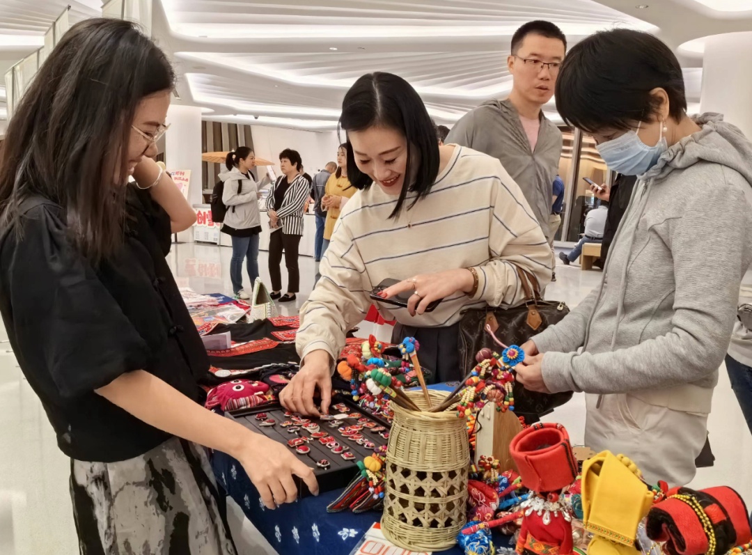 演出期间,红河文旅还在现场展示了花腰彝族刺绣、手工剪纸、竹编、茶叶等红河非遗,吸引了大批市民。这些非遗文创产品不仅做工精致而且富含美好的寓意,具有最原汁原味的红河彝族风情。
