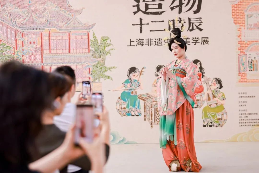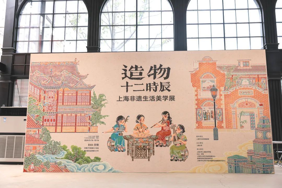 本次展览将持续至10月16日,由上海市文化和旅游局指导,上海大学主办,上海大学上海美术学院副院长章莉莉担任策展人。展览通过中央复兴车站里十二时辰的时光流转,重点展示十二项上海非遗代表性项目。既有富含江南古韵雅趣的朵云轩木版水印、崇明土布、徐行草编、上海剪纸、金山农民画、上海民族乐器制作,也有融合东西方文化的黄杨木雕、上海绒绣、海派旗袍、钩针编织、珐琅器制作、海派家具制作等非遗技艺。