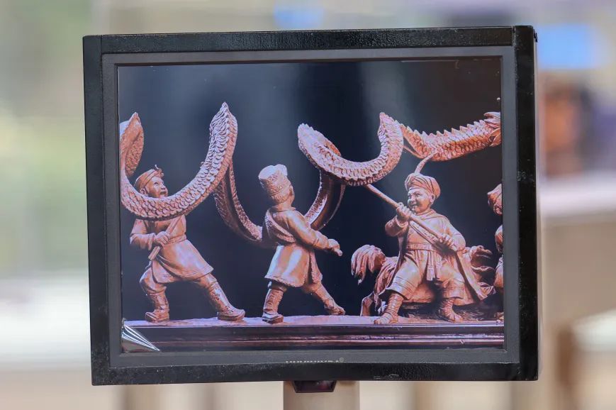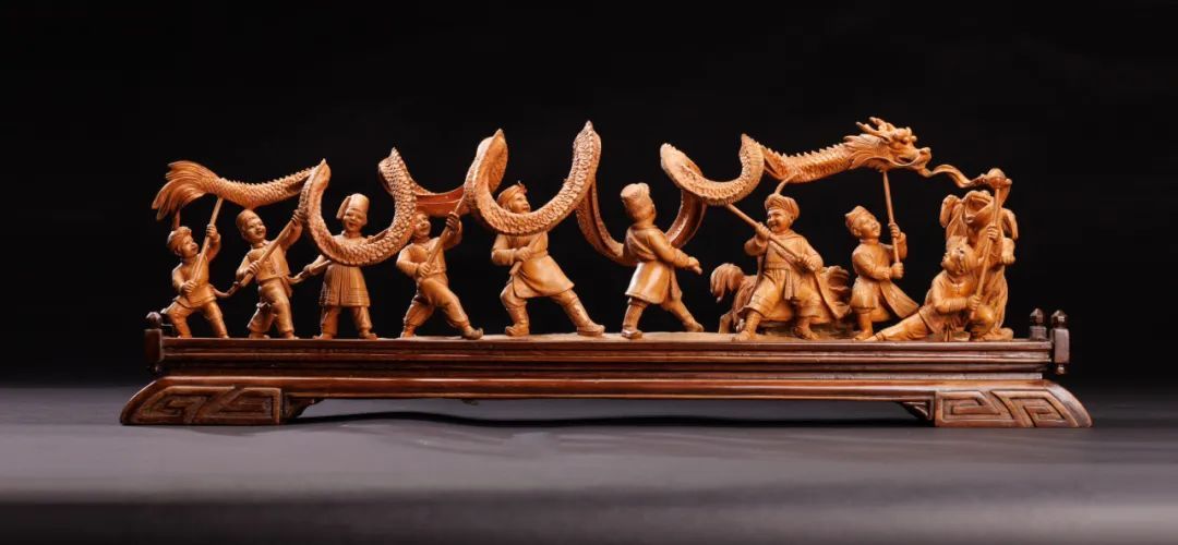 始于20世纪30年代的黄杨木雕,结合民间雕塑技艺和西洋素描技法,具有典型海派特色。此次展出的徐宝庆作品《狮舞龙腾》,利用数字技术放大局部细节,提供多维观赏角度。展览还汇集多件黄杨木雕代表性作品,囊括老中青三代艺术家,主要选材于鲜活的市井生活,让传统技艺在新时代继续绽放绚丽光芒。