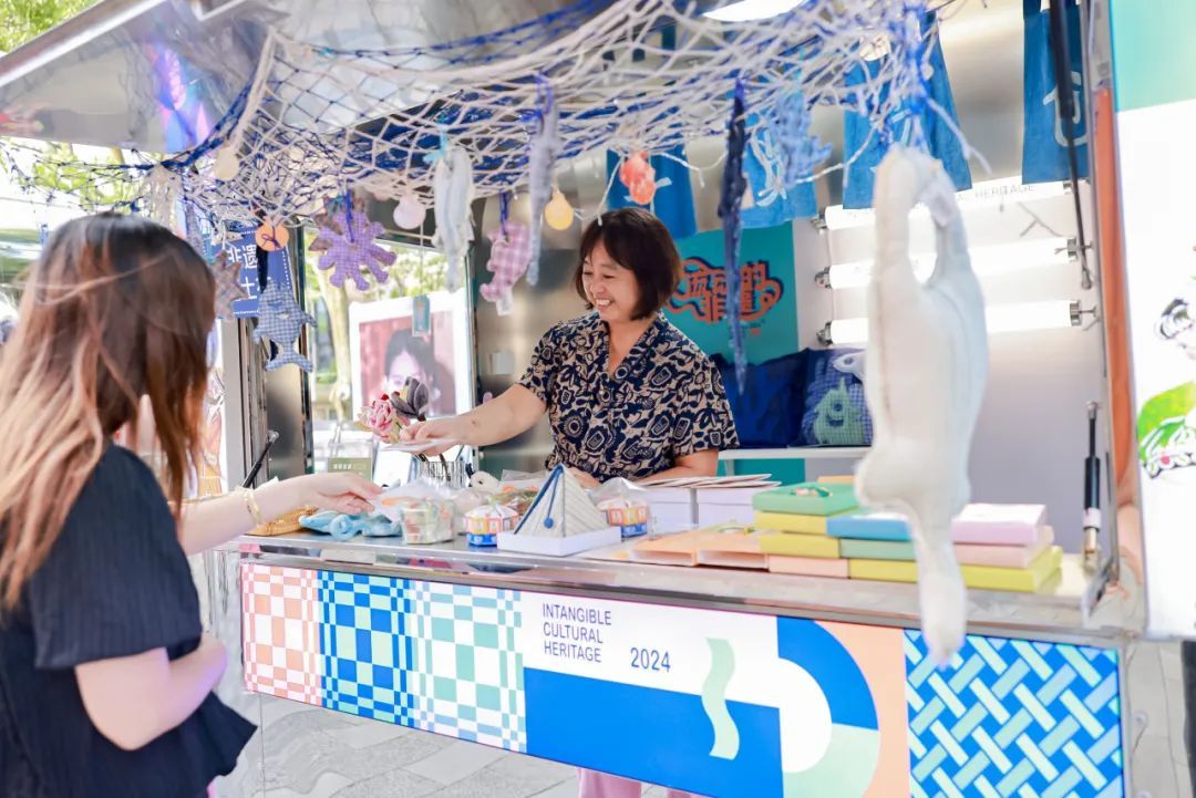 非遗与文创产业的跨界融合,拉近了传统文化与日常生活的距离,让更多年轻人知道原来非遗可以这么有趣、这么酷。展览期间,还同步开启“流动的非遗”快闪,4辆非遗创意文创小拖车在园区内移动,打造流动的潮流精品非遗文创“造物社”,用文化赋能产业,以品牌助力传承。