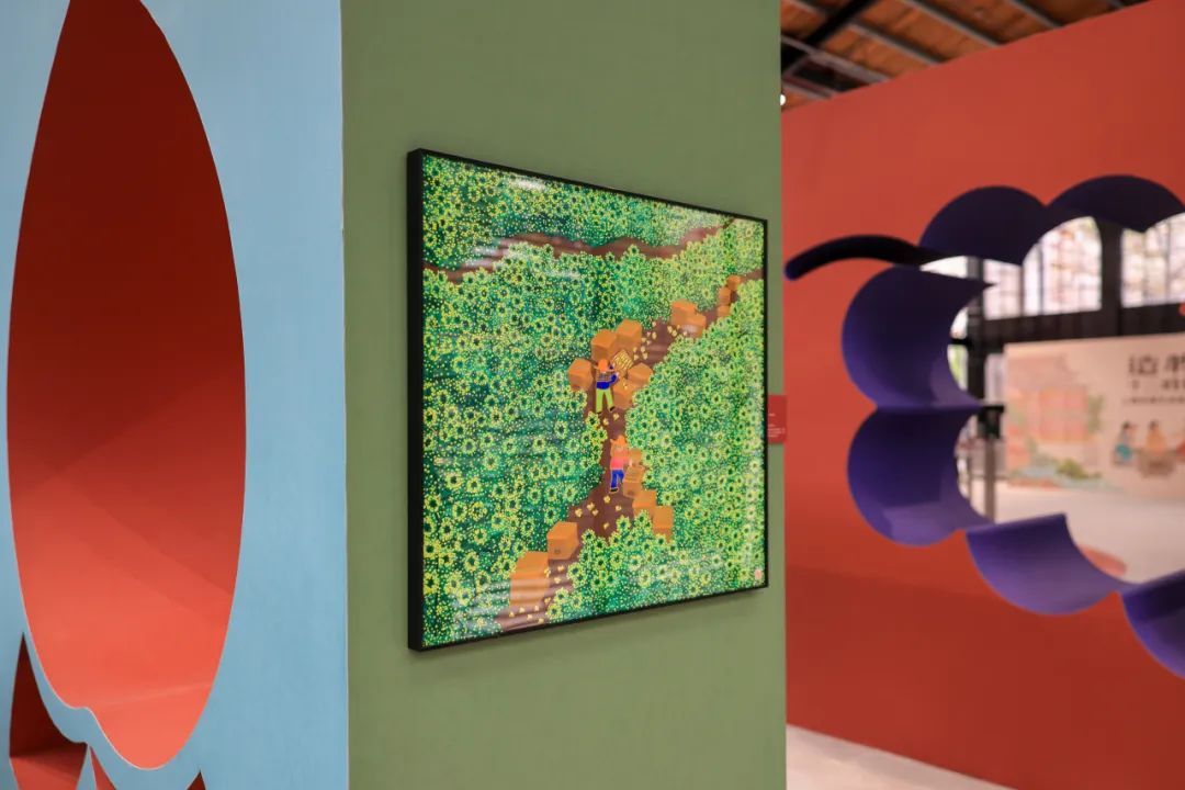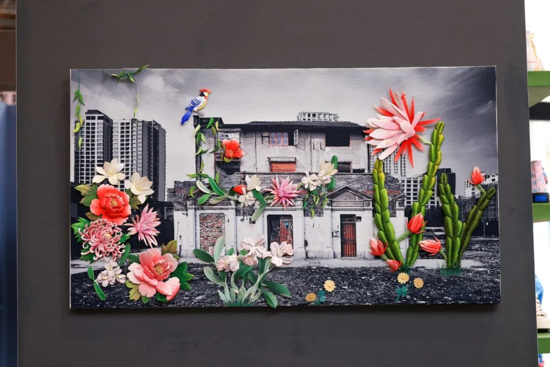 近年来,海派非遗与当代艺术频频“牵手”,在传承活化中焕发新生。高境布艺堆画《追忆似水年华》,在黑白建筑摄影上“长”出了鲜艳热烈的布艺花朵,唤醒一代人对上海老城区的记忆。展览中还可以看到草编《生生不息》、土布《环环相扣》等系列公共艺术装置,让非遗走进现代生活,展现了海派文化更多的创作可能性。