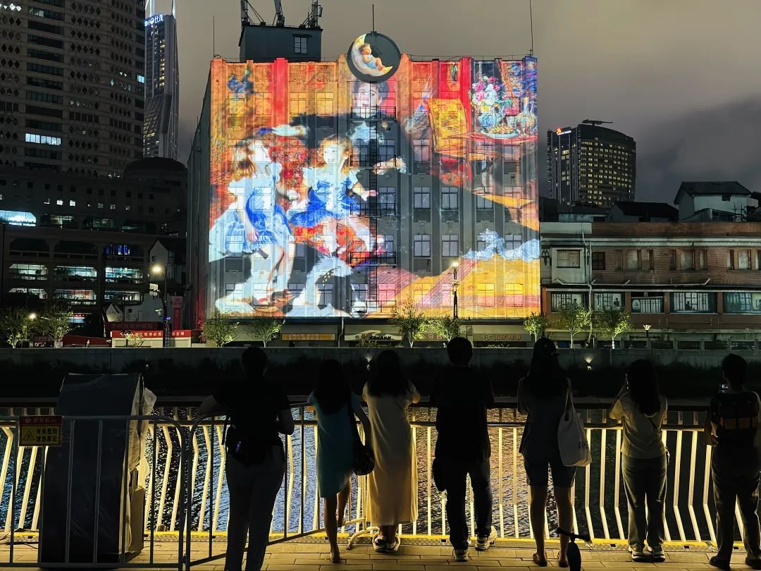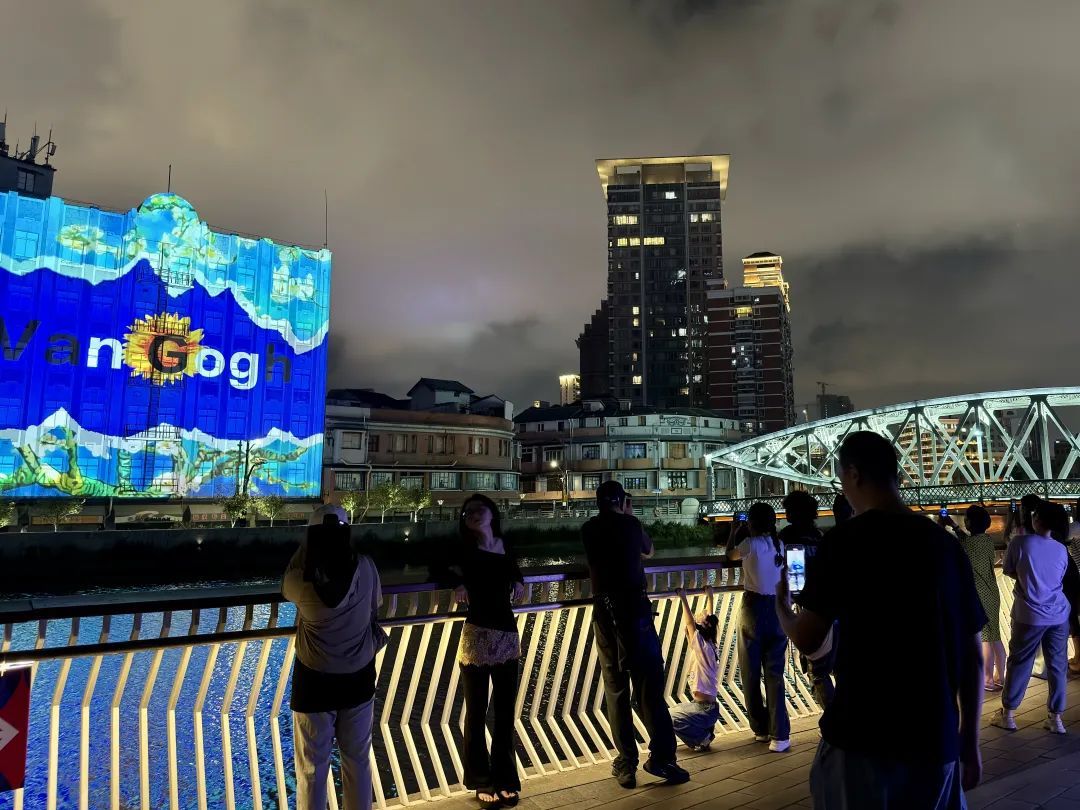 国庆七天长假,灵动的光影艺术再度点亮苏州河畔的夜晚,许多市民游客选择来一场国庆限定的苏州河夜景City Walk。在引人注目的闪亮光影艺术之余,以光影为灵感串联起的一幕幕河畔夜生活场景,以城市烟火气和潮流艺术生活方式,为苏河湾商圈带来了假期大客流。