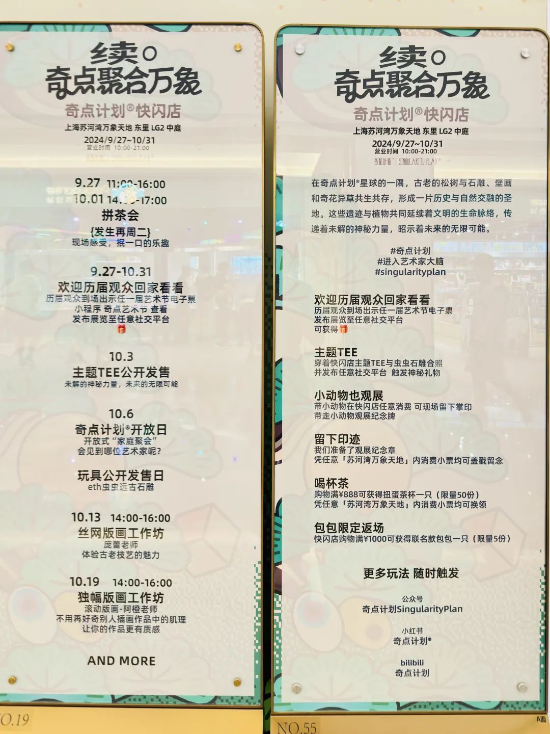 即日起至10月31日,东里LG2中庭呈现奇点计划首个快闪,营造了一个融合自然与远古文明的艺术场景。聚合10位青年艺术家的作品,带来现场限定玩具发售、艺术家快闪接管及丝网版画等超多互动玩法。
