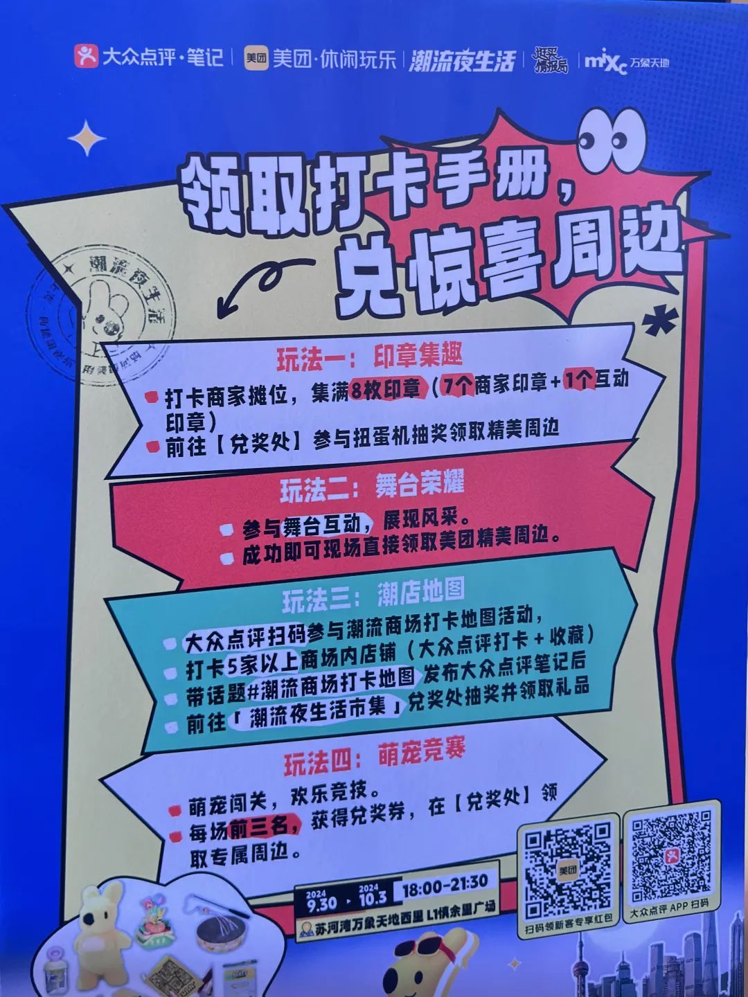 9月30日—10月3日晚,西里L1慎余里广场迎来美团潮流夜生活市集,点“靓”了城市夜经济。集市现场,聚集了不少本地的美团优质商家,为现场观众带来歌王挑战、拳击、养生、运动、亲子、宠物等潮流玩乐体验项目。6大主题场景,多款互动游戏,现场打卡集章还可获得指定礼品周边。