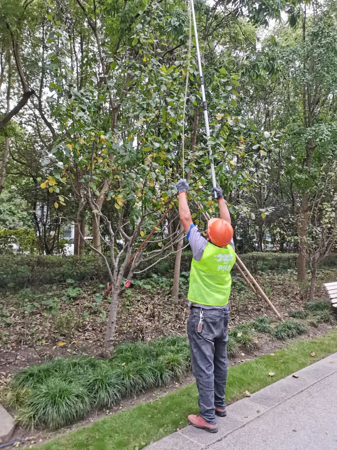 在紧邻市民广场的中央公园南侧,此次竞赛的另一个项目花灌木修剪也正如火如荼地开展。身穿绿色马甲的参赛人员正在比拼北美海棠的修剪,随着高枝剪咔嚓一声,一根根树枝应声落下,北美海棠在此起彼伏的修剪声中有了更美的模样。“主要是把那些影响开花的枝条剪掉,再修修形状。”参赛选手尹纯虎解释。