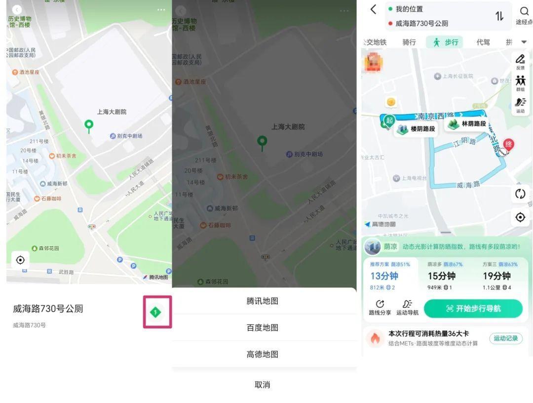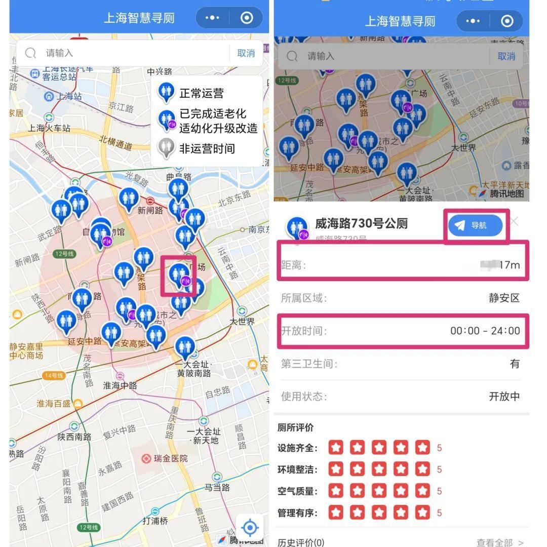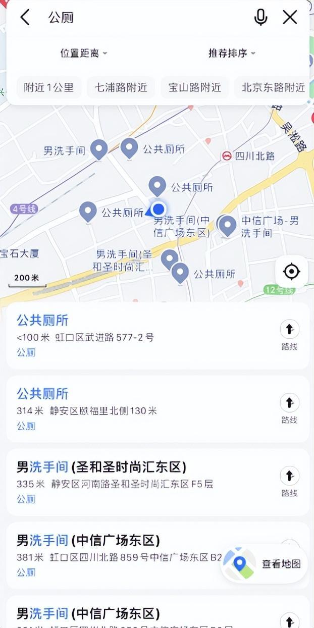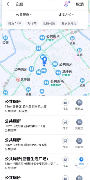 百度、高德等地图除覆盖本市环卫公厕外,还涵盖了量大面广的商场、酒店、轨交等社会公厕。