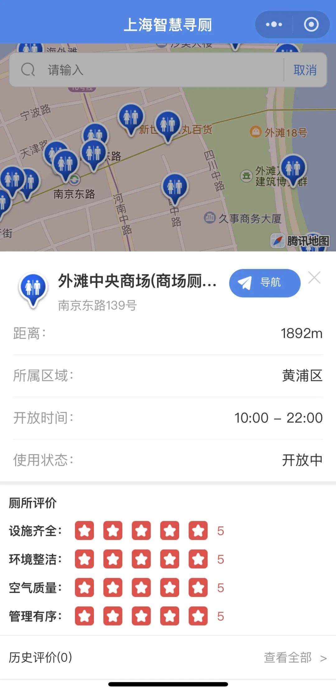 另外,黄浦区南京路—外滩区域等热门路段,为了应对大客流,小程序中也同步收录了沿线商业体及部分办公大楼厕所。
