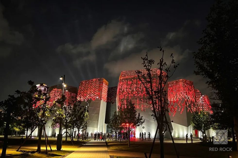 原俄罗斯馆由12座充满俄罗斯风情的塔楼和中央主立方组成,不规则的塔楼外形,宛如童话世界中的异形城堡。经过全新改造,场馆已成为演艺中心RED ROCK(红石中心),来自日本京都的三人摇滚乐队——10-FEET燃情首演,强节奏摇滚乐引燃现场。