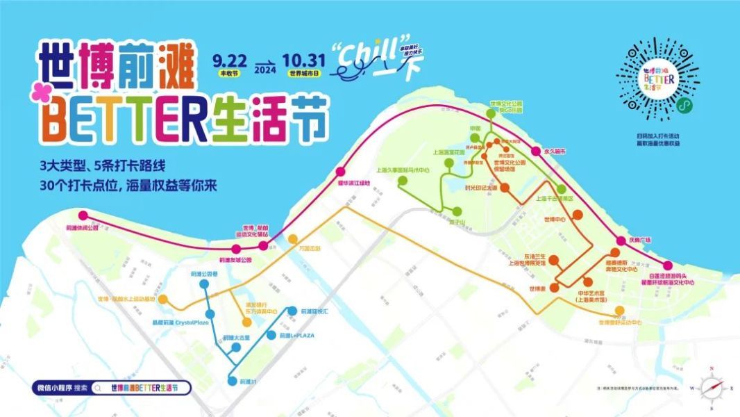如何发挥集聚效应,挖掘更大潜力?这个秋天,第二届世博前滩BETTER生活节全面升级,整合辖区内各大文化场馆、标志性商圈、特色商户等优质资源,推出“观演出、赏展览、玩体育、逛集市、逐光影”五大板块,串联起一场场高品质活动。