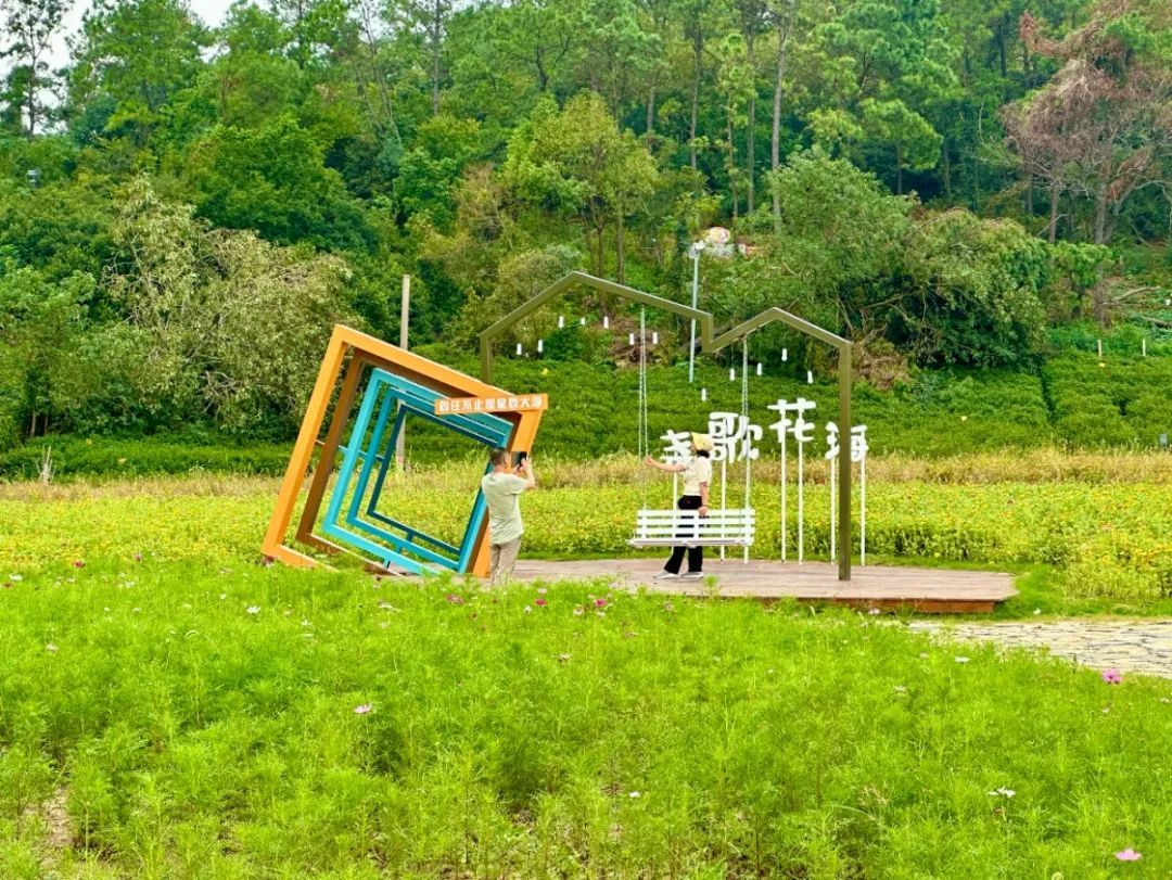 尧歌花海位于尧歌里村入口北侧,占地面积约3.8万平方米,原先是一片荒地,现在栽种的是波斯菊、百日草、硫华菊、醉蝶花等各种花草,一年四季,各有花期,打造了一片错落有致、四季有花的绝美花海,花海中央还有月亮秋千、风动雕塑等休憩场所和景观节点,市民游客可在此停留休息。
