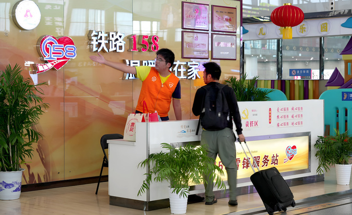 南京、南京南站60余名青年志愿者分时段开展志愿服务,配合做好进出站口、电梯口、安检通道等引导以及现场问询解答等服务;“158”雷锋服务站为老、幼、病、残、孕等重点旅客提供免费的义务帮扶,需要的旅客可通过铁路12306官方APP、拨打12306客服热线或到车站进行预约。