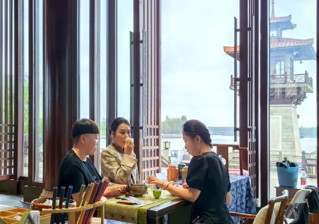 尽管当日下着小雨,仍有游客赶来观茶、品茶。市民耿女士和朋友汤女士相约而来,两人还特地带了油纸伞,在江边拍照打卡。“假期还有两天,就近过来转转,刚好还碰上了茶会活动,在江边喝喝茶、看看风景,蛮好的。”耿女士说。
