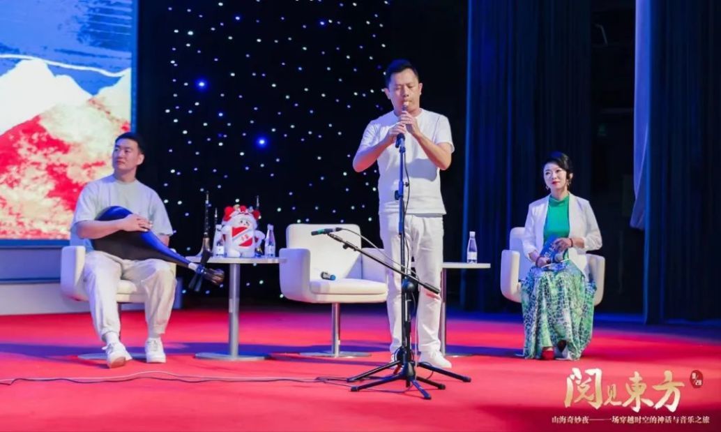 中国首个3A游戏《黑神话·悟空》在全球范围引起了极大关注,再一次证明了中国传统神话故事的无穷魅力。近日,作为“阅见东方”系列讲座之一,“山海奇妙夜——一场穿越时空的神话与音乐之旅”在浦东图书馆举行。艺术家通过唢呐、琵琶等古老而充满力量的中国传统原声乐器,与现代电子音乐的合成器、鼓机等设备相结合,勾勒出《山海经》里的瑰丽世界,展现出中国神话与民族音乐穿越时空的魅力。
