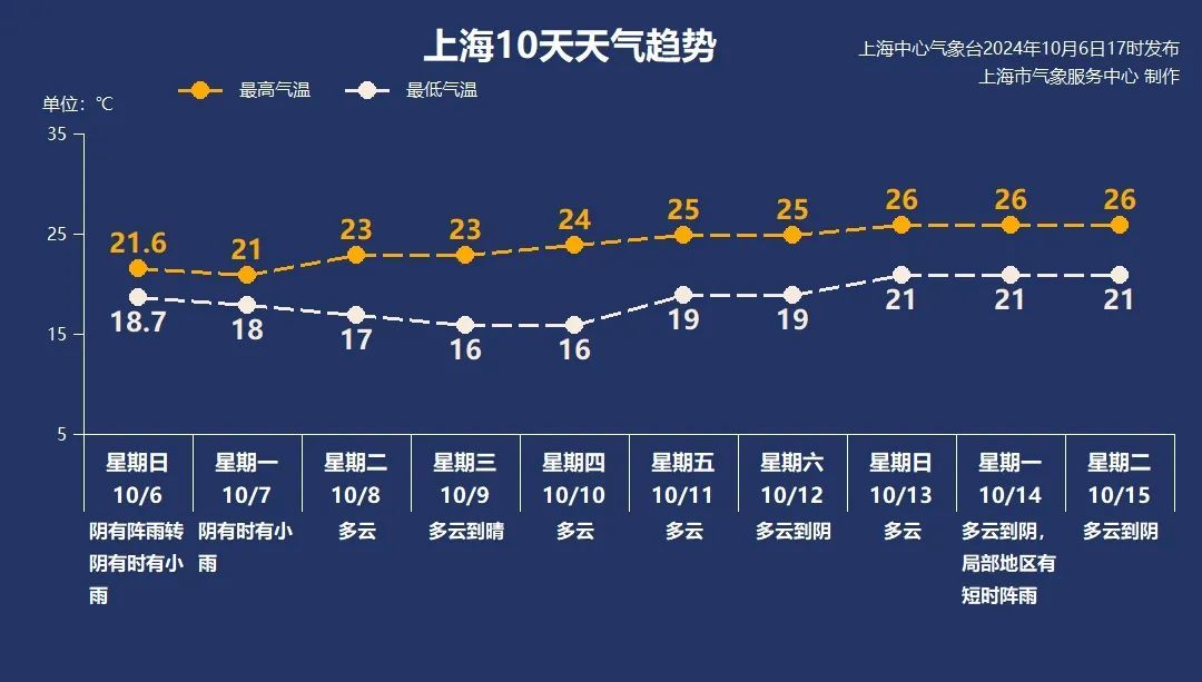 6日一早,申城依然维持阴雨天气,局部地区雨量中等,好在下午雨势开始减小,转为阴有时有小雨的天气。偏北风4—5级,沿江沿海地区5级阵风6—7级。正值假期返程高峰,由于下雨道路湿滑,能见度下降,给市民的出行带来许多不便。今天气温下滑,体感更加清凉,最高气温仅21℃左右。