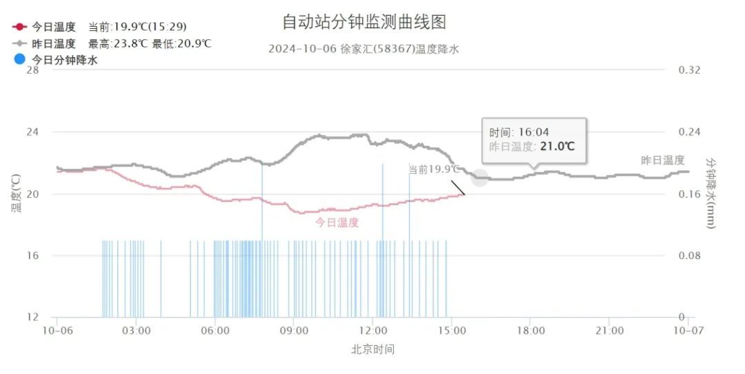 初秋体感拉满~最高气温出现在今天凌晨,市区徐家汇站21.6℃,白天雨水和冷空气共同打压下,气温在20℃以下徘徊,也一举将上海送入气象意义上的秋天↓↓↓