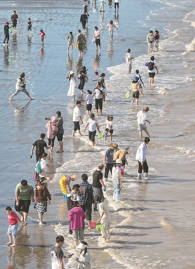 10月1日以来,秦山岛景区日均游客接待量1.2万人次,其中秦山岛岛区日均接待量1300人次。“国庆假期这几天潮汐水位较低,‘神路’赶海项目游客们都是收获满满。”赣榆文旅发展集团副总经理黄泽说。