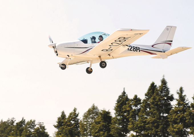 10月4日,沭阳县市民在花海航空飞行营地乘坐小型固定翼飞机。丁华明 摄(视觉江苏网供图)