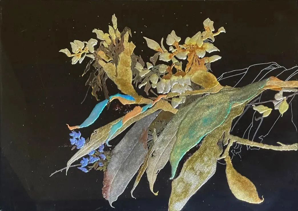 在21世纪海上丝绸之路的首倡之地印度尼西亚,非物质文化遗产该如何散发新意?巩志伟介绍,此次展览不仅有《远方》《鸳鸯戏鱼》等展现中华优秀传统文化和技艺之美的作品,更有展现出中国传统工艺“新”韵的作品。例如,作品《浮光掠影》在工艺上采用传统景泰蓝技艺,而在纹样和色彩上和传统器型又截然不同。作者让金属丝不仅起到分隔颜色的作用,还将铜丝作笔描绘出阳光洒落在水面上的样子,使金属丝成为作品审美元素的一部分,传统与创新相融合,更生动地描绘出缕缕阳光浮于水面的画面。