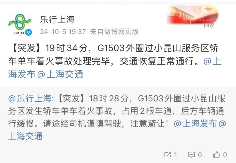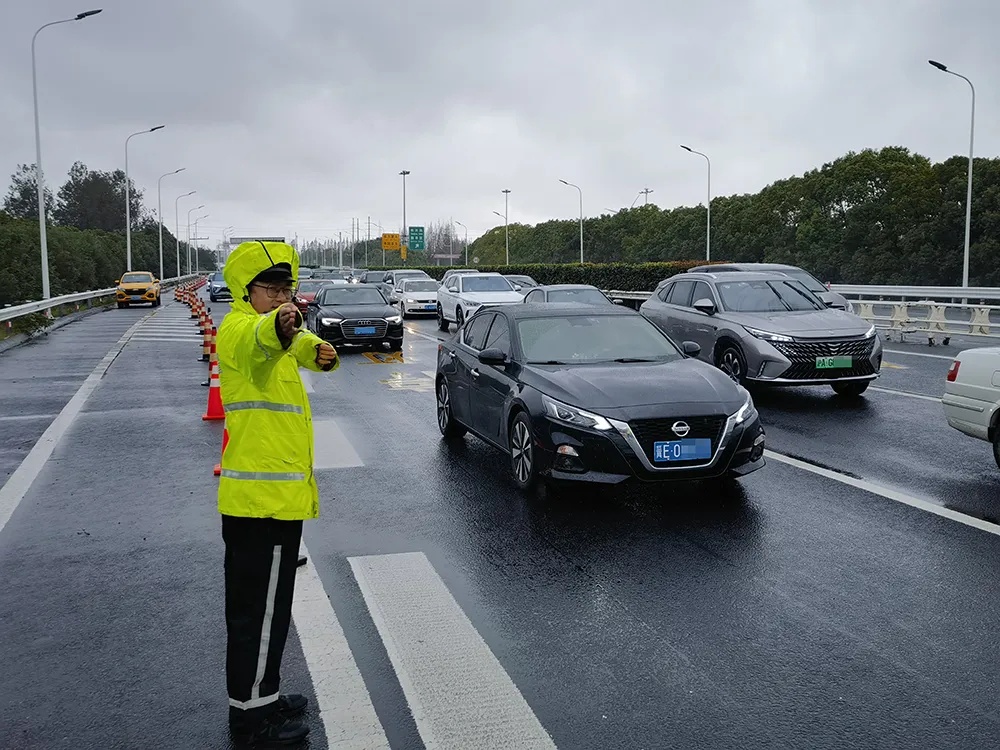 10月6日9时许,长江口区的大雨逐渐变小。崇明警方介绍,陈海收费口返程车流如约而至,长江大桥车流量达到每小时3800辆,车速每小时30公里,预计返程车流高峰将持续至10月7日凌晨以后。崇明警方增派警力手持警用喇叭,在汇入主路的各个路口,以及陈海收费口、潘圆收费口展开限流疏导工作,防止车流快速激增。“车流一旦出现缓行,我们在G40下行线长兴服务区出口处及时启用信号灯控制模式。”崇明交警支队高速大队大队长张国祥表示,为确保G40长江隧道通畅,崇明交警继续采用信号灯“分段控流”措施,动态控制下行线进入隧道的车流量,除长兴服务区出口加速车道可变道至3号车道外,1号、2号、3号车道之间不能随意变道,确保缓行车流有序前行。与此同时,崇明交警启用无人机,在G40长江隧桥主线开展巡查,通过无人机的高空视野与地面公共视频巡视相结合,实时掌握缓行节点和整体路况,及时发现、快速处置各类突发情况,对加塞、占用应急车道等交通违法行为开展高空喊话、取证执法。据上海交通指挥中心预测,在6日、7日两天的返程高峰里,这些路段入城方向可能产生较长时间拥堵:G40沪陕高速长江隧桥,8时—22时;G15沈海高速嘉浏段,13时—20时;G50沪渝高速朱枫段,13时—20时;G60沪昆高速中春路段,15时—21时;S32申嘉湖高速林海立交段,16时—20时。据途经现场的市民介绍,当时看到一辆轿车停在事发路段的最右侧的应急车道上,现场火势较大,整辆轿车被大火吞噬。消防队员到场后,很快将现场明火扑灭。事故造成起火轿车被烧毁,所幸现场无人员伤亡。