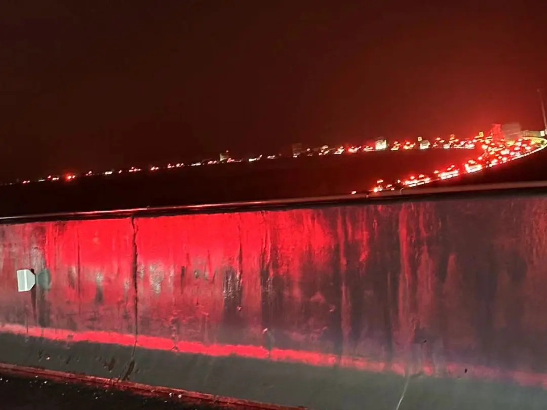 “天黑后,堵在高速上,前面都是一片红色的尾灯,根本看不到头。”陈先生说,“好在服务区还是进得去的,没有影响到我们路上吃饭,无非是堵车路段的服务区比较拥挤。”“14个小时!自己选的路跪着也要开完!”堵车堵得陈先生快没了脾气,他忍不住发了朋友圈。