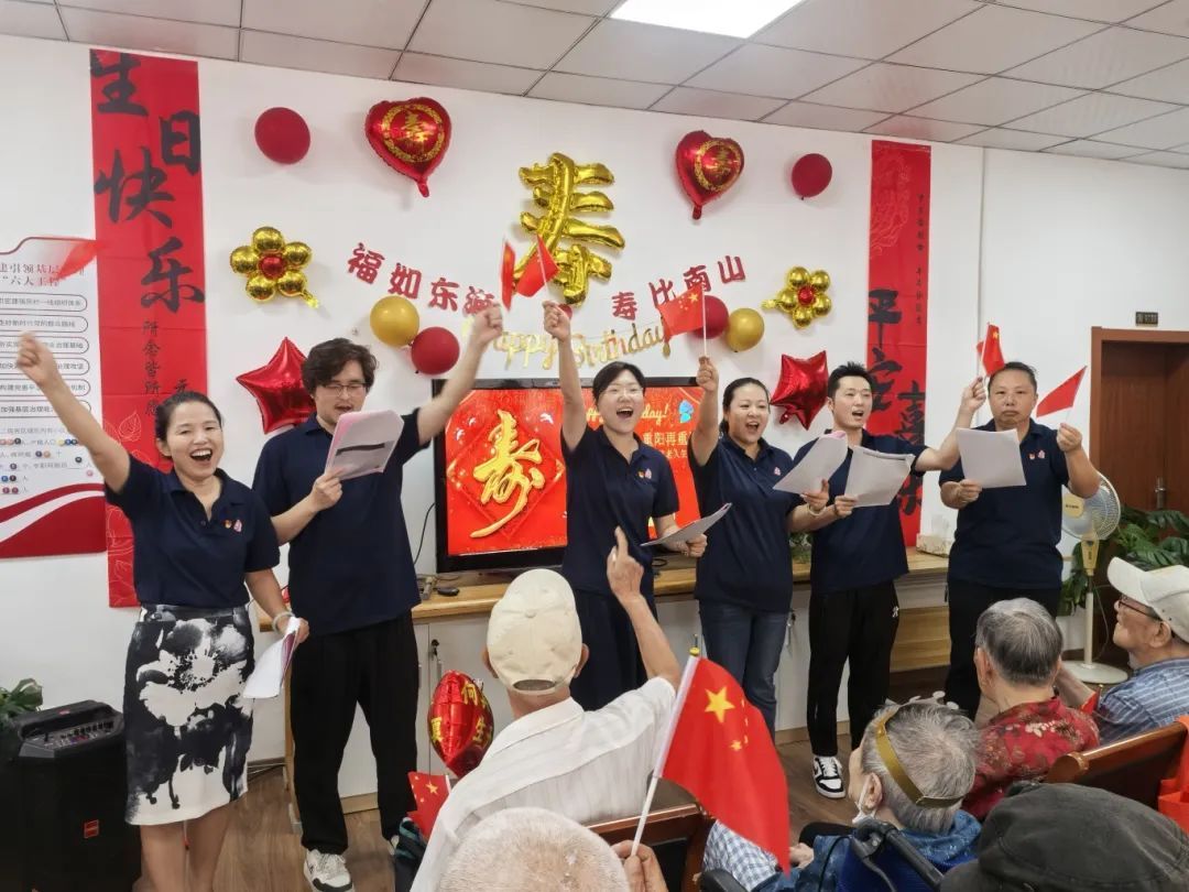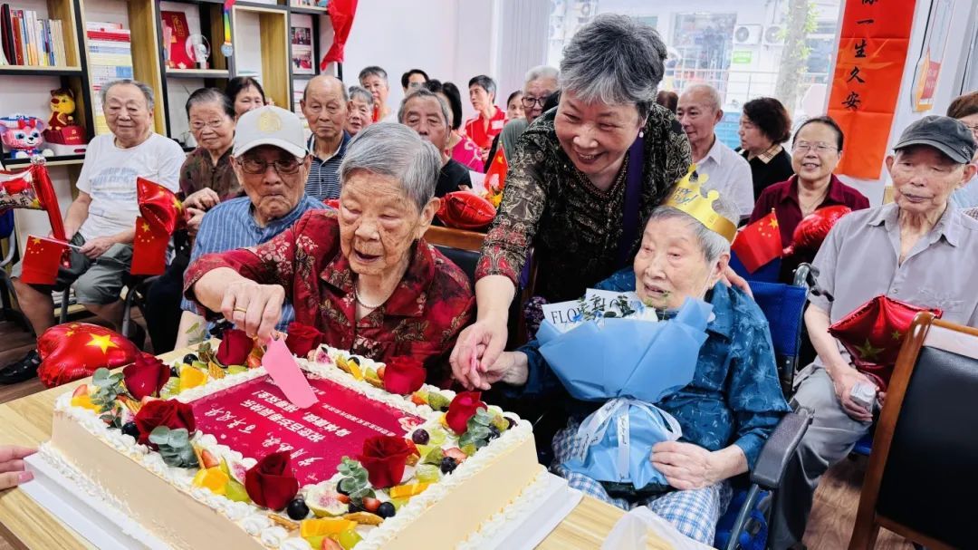 为弘扬中华民族尊老、敬老、爱老的传统美德,恰逢新中国75周年华诞,徐汇区漕河泾街道南二居民区在上海市慈善基金会的支持下,精心筹办了一场特别的百岁老人生日宴,为社区内100岁的张秀珍和101岁的张二宝庆祝生日,也为社区老人提前送上第76个重阳节的问候与祝福。社区内的孤老、独居老人、纯老家庭以及志愿者们也一起欢聚,共同见证这场温馨的百岁生日宴。