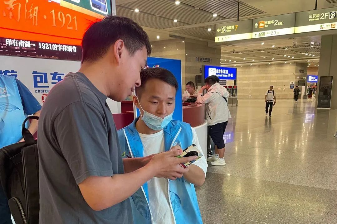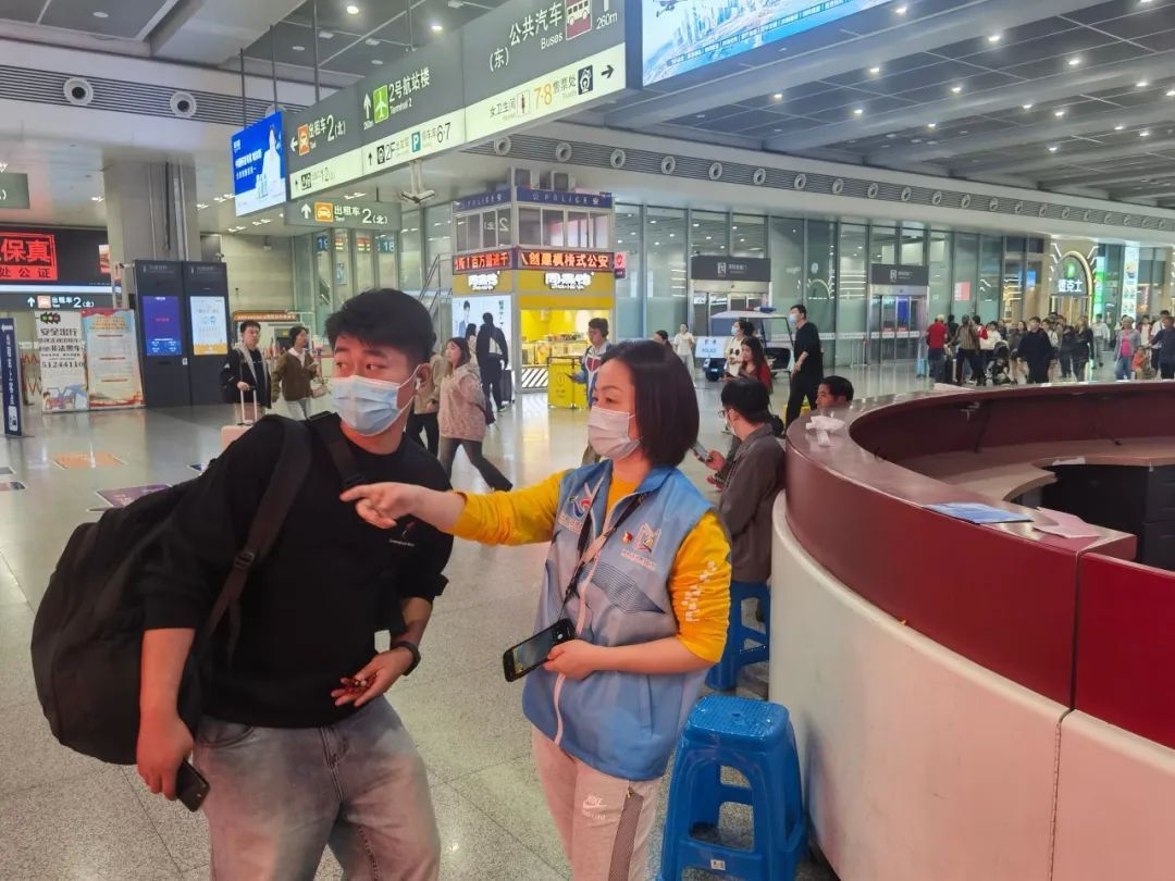 我的工作岗位在旅客出站口处。当天下午我留意到一位旅客显得格外焦急,我主动上前询问得知,她是一位韩国旅客,急需转车前往苏州,但因看不懂车站的中文标语以及对环境不熟悉,一直未能找到人工售票处购买高铁票,已经在站内徘徊多时。见状,我带着她前往售票处8的人工售票窗口并协助完成了购票手续。随后,我指引她前往2楼候车室,安心等待列车的到来。这时,她用略显生疏的中文对我说:“谢谢,你们太好了!”那一刻,我深刻感受到,作为志愿服务者,我们的每一个小小举动无论是耐心的指引还是贴心的帮助,都能为旅客的旅程增添一份安心与温暖。