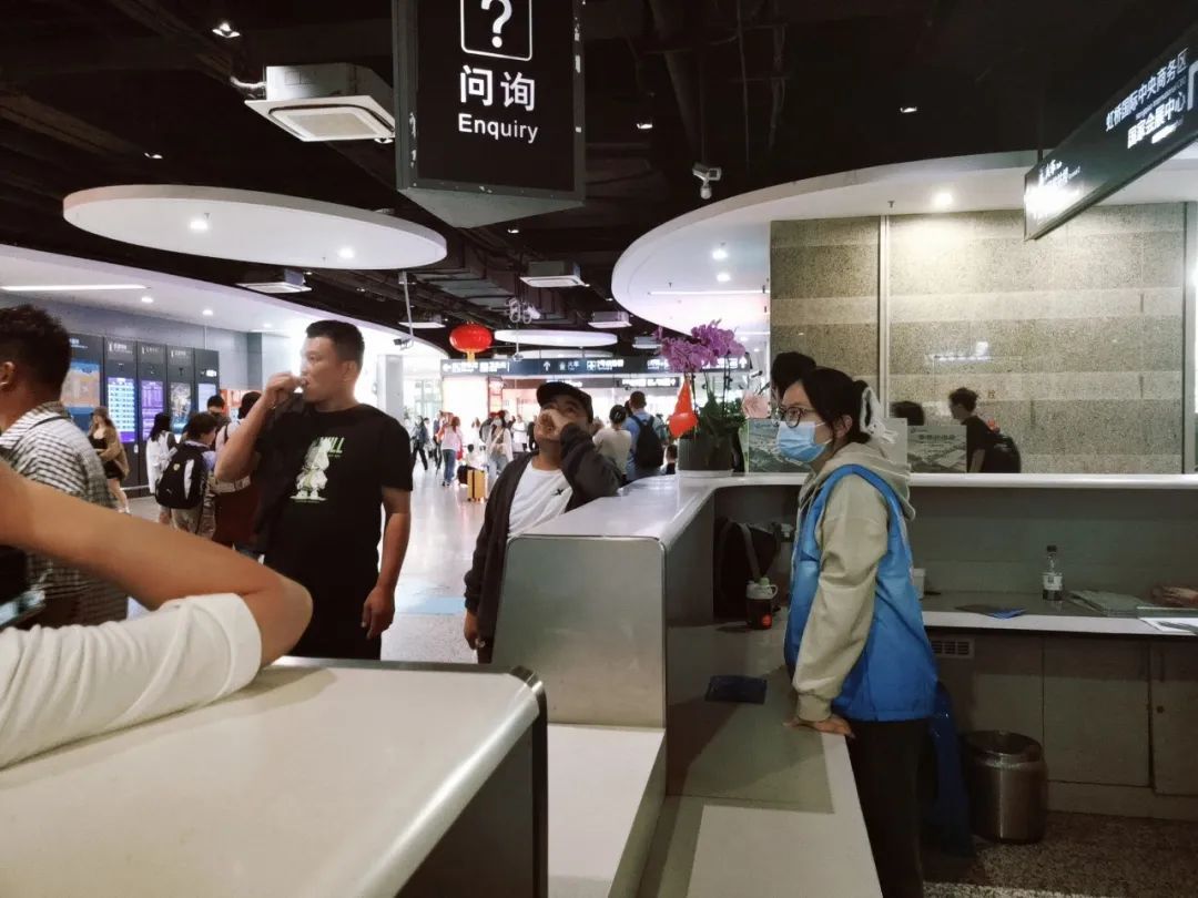 我在虹桥火车站一号问询处,人流密集,是进站出站的必经之路。“坐高铁怎么走?”“接人出口在哪?”“公共汽车站在哪个方向?”“虹桥天地往哪走?”“Where is the railway departure?”一天回答了无数个这样的问题,虽然都是几个字,或者一个手势就能完成的小事,但我能感觉到就是这么几个字或者小动作等带给旅客一份安心。志愿者的亲身行动或者指引能带给需要帮助的旅客一份温暖。