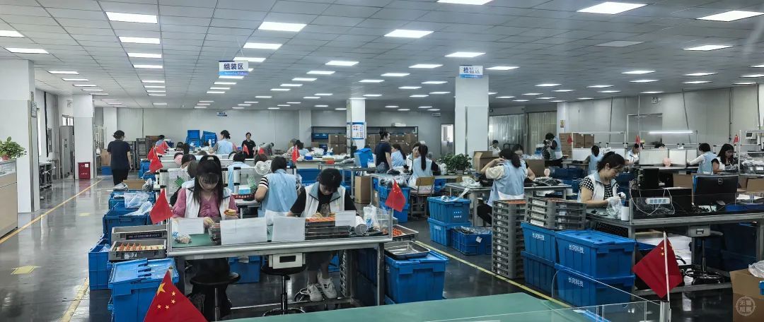 产品线上“飘扬”五星红旗,生产车间内满载运转,节假期间,无锡长冈电子机械科技有限公司近70%的员工正常在岗赶制订单,机器轰鸣声与销售跟单人员的声音交织成一片繁忙景象。