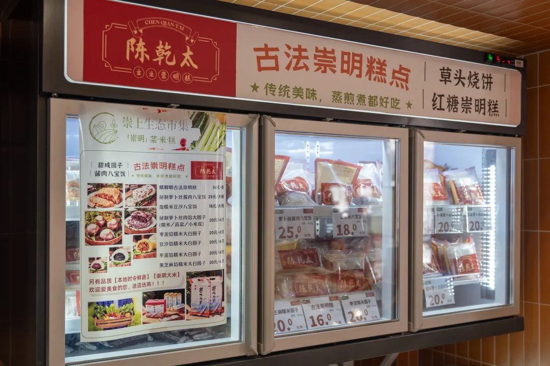 直营店内,崇明菜、米、糕大约占了全部商品的三分之一;其余区域内则销售有光明和华良等品牌的商品。“通过和其他品牌合作开店,不仅降低了运营成本,也能实现互相赋能、互相促进,打开更广阔的前景。”陈耀坤告诉记者。