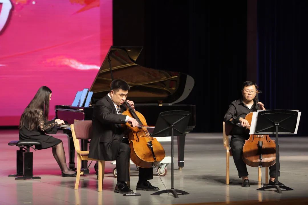 音乐会开场以近60把大提琴组成的超强大提琴乐团阵容,演绎著名作曲家吕其明的《红旗颂》,宏大的旋律和大提琴深沉的音色很好地表达了音乐家们对祖国的深情礼赞。音乐会压轴曲目是由舒楠作曲、黄小龙改编的《不忘初心》,将音乐会再度推向高潮。