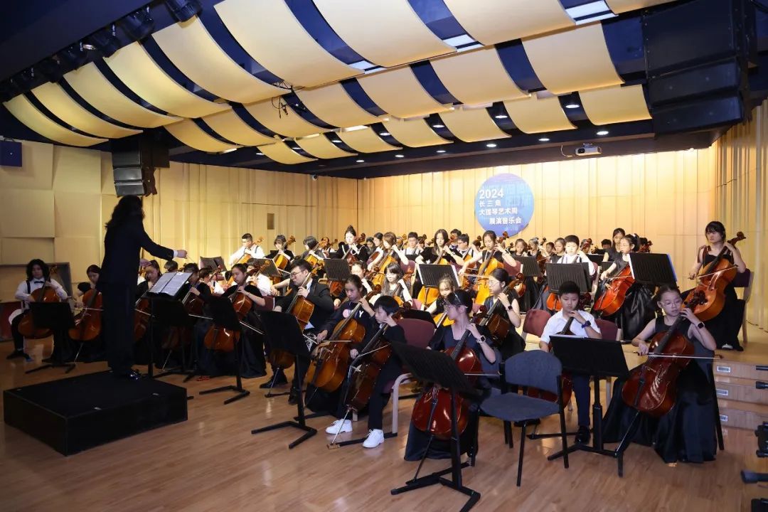 为了更好地向优秀展演者提供施展才华、舞台历练的机会,同时营造选手之间互相交流学习的氛围,10月6日下午,艺术周举办了“展演音乐会”,来自不同组别一等奖前三名的24首曲目,以独奏、重奏和乐团等不同形式,配上钢琴伴奏,在聚光灯下集中呈现。舞台上那些发光的同龄人既是琴童家长们眼中“别人家的孩子”,更是台下聚精会神的孩子们心中学习的榜样、赶超的目标。