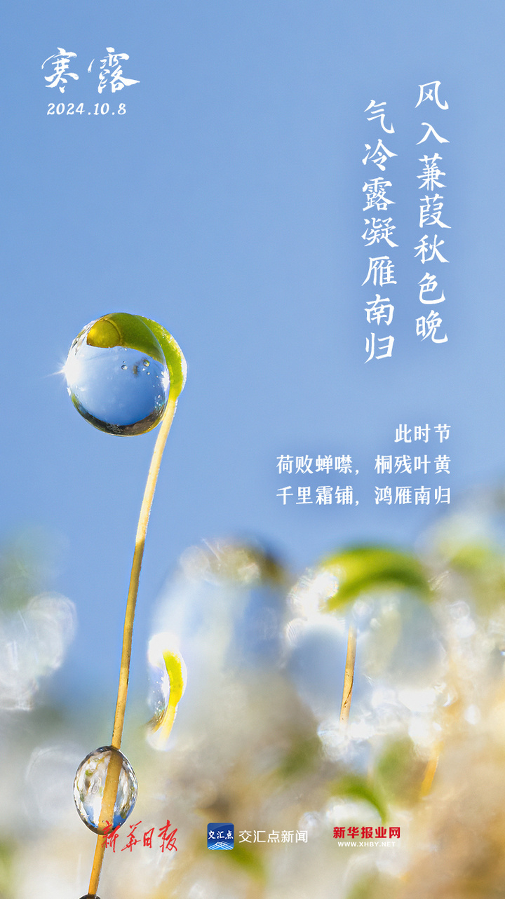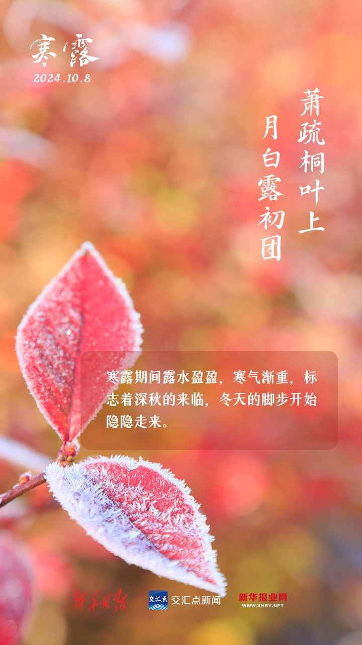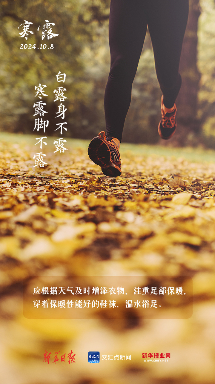 今天,我们迎来了二十四节气中的第十七个节气——寒露。寒露的来临,意味着气温下降速度逐渐加快,秋露就要凝结成霜,天气也将由凉爽转为寒冷。进入寒露后,应及时添衣御寒,尤其是足部保暖,“白露身不露,寒露脚不露”,今天起别露脚踝啦。