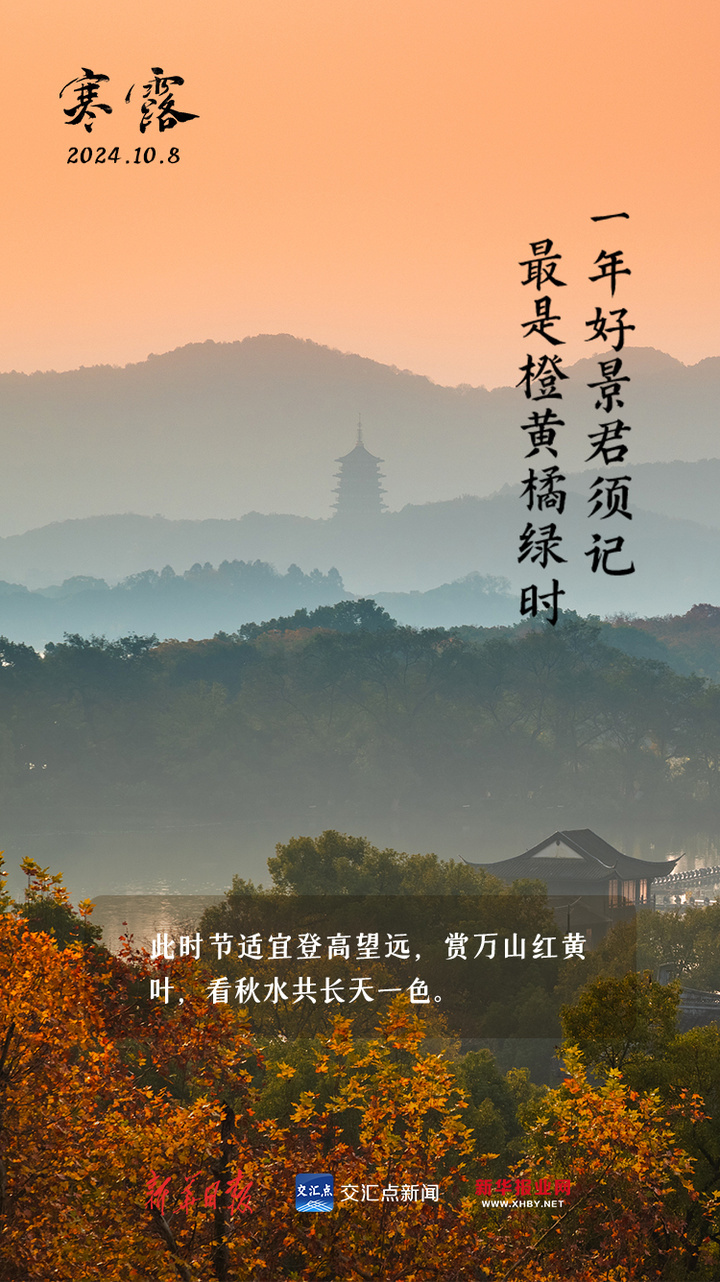 寒露时节,秋色渐渐浓重起来,从北到南铺天盖地般展现出来:北方层林尽染、如霞似锦;南方红黄夹杂、俏丽多姿,此时节正是登高望远的好时候,让我们一起尽情领略秋色的美好。