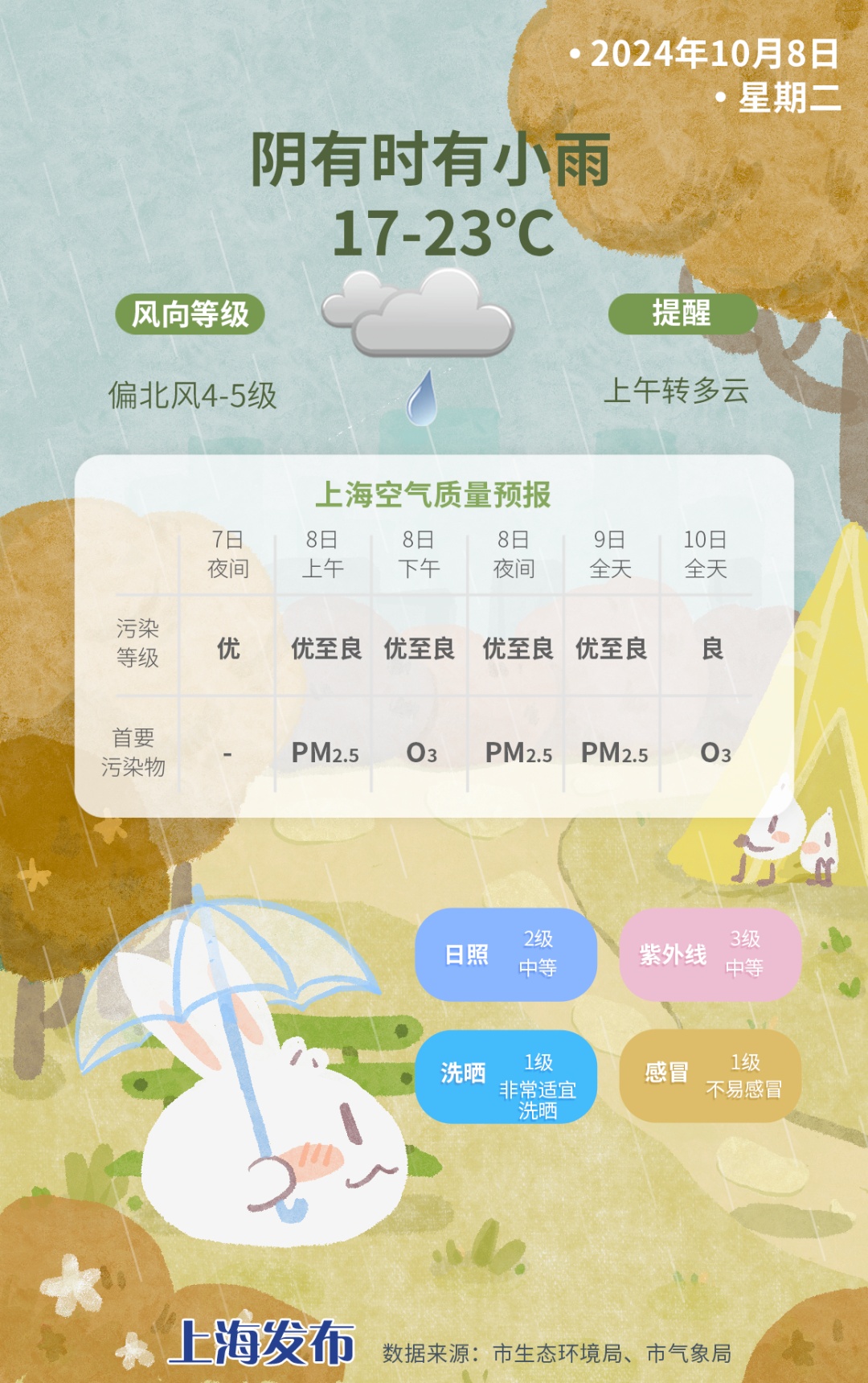 【特别提醒】申城已于10月2日入秋,今天是“寒露”节气,这是24节气中第一个带“寒”的节气。这个时节,上海秋意渐浓,昼夜体感差异明显,易发感冒,请大家根据天气变化合理安排工作生活。