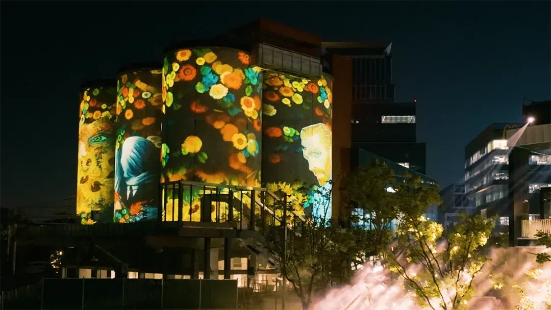 当全球的“潮流艺术家”画作汇聚于昔日水泥厂的巨型砼仓,让人不禁惊呼:这一场西方美术简史的浓缩展,简直太酷了!达芬奇《抱银貂的女子》、卡拉瓦乔《酒神巴克斯》、维米尔《戴珍珠耳环的少女》,以及梵高的向日葵、星空、原野,蒙德里安的非具象绘画,尽数展现在巨幅的“立体画布”之上,在这片中西文化交汇之地,传递着万般美好的艺术能量。