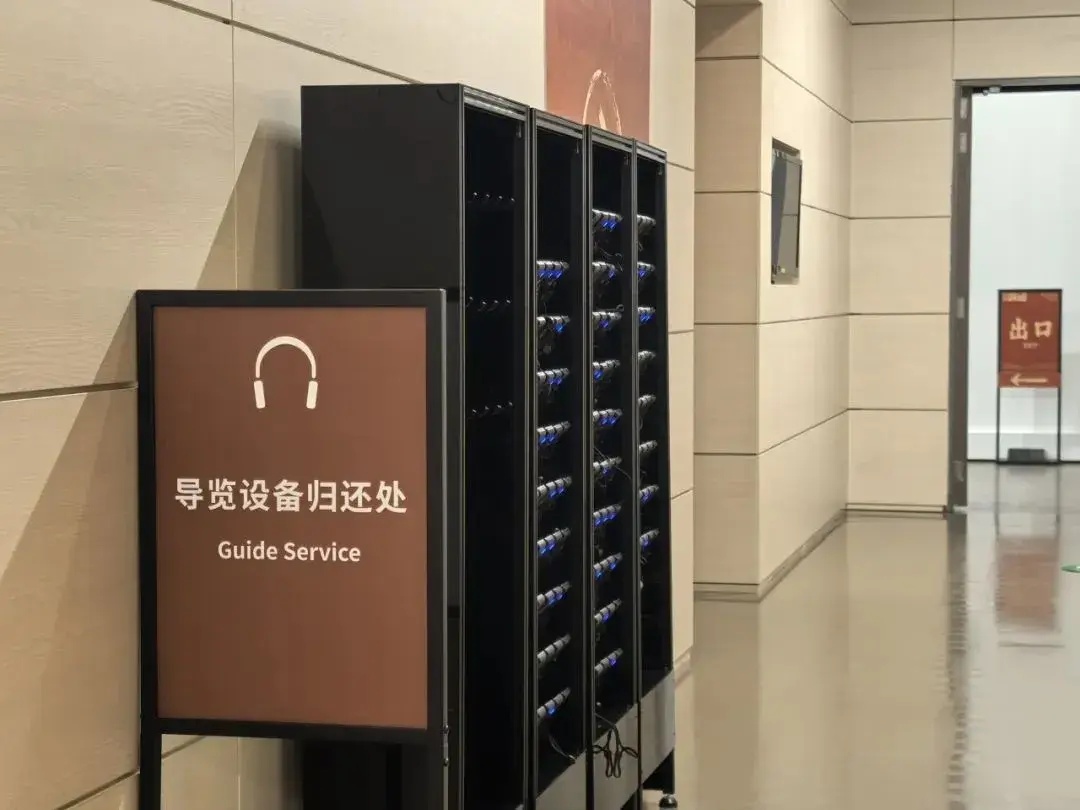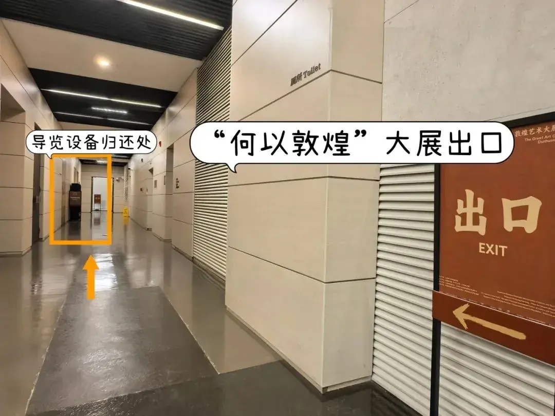 6、参观结束+选购文创后,可由箭头出口处离场,归还导览设备;