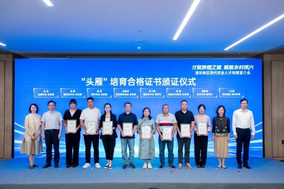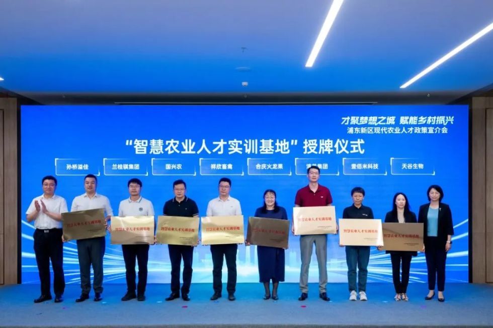 此外,会上向浦东新区乡村产业振兴带头人“头雁”颁发了结业证书,鼓励“头雁”做大做强、带领“雁阵”齐飞,并向清美集团、兰桂骐集团、孙桥溢佳、国兴农、祥欣畜禽、合庆火龙果、壹佰米科技、天谷生物等企业授牌“智慧农业人才实训基地”。