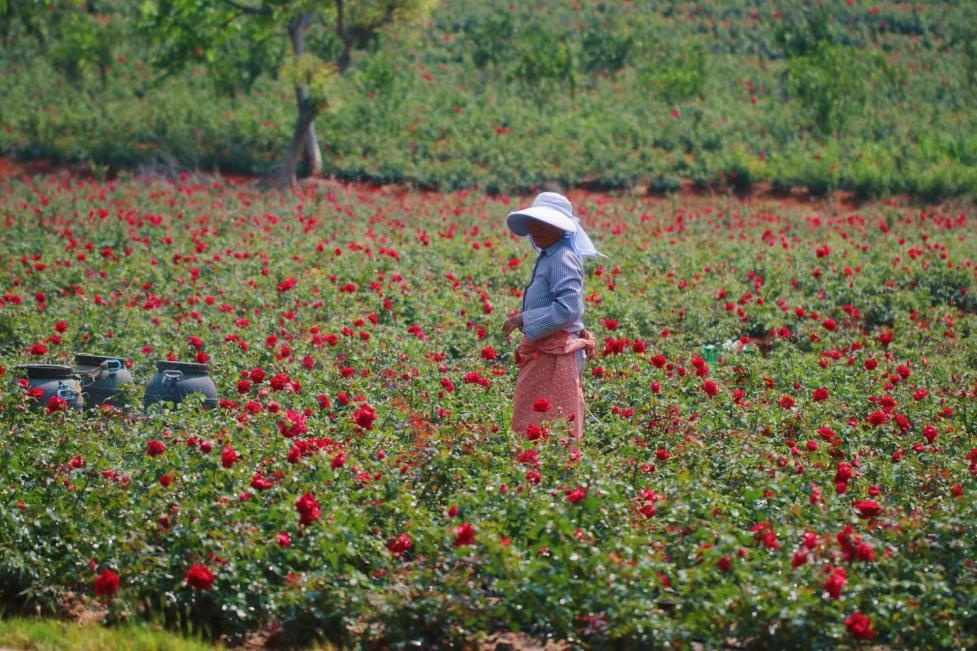 “玫瑰绽放繁华景,香气袭人似仙境”。一簇簇、一朵朵,粉如霞、红似火,娇艳欲滴,清香扑鼻,在阳光的照耀下显得格外光鲜明亮,博人眼球,美不胜收。近日,曲靖市师宗县丹凤街道古城村玫瑰产业园中的食用玫瑰相继盛开,生机盎然,花农、游人在花海间穿梭,采摘、分拣、晾晒、观赏、留影、品尝......热闹非凡。项目采取农户流转土地、商家技术加盟、社区统筹实施模式,在沪滇协作资金等支持下,建成集食用玫瑰种植、浆果种植、采摘、系列产业深加工、销售为一体的乡村振兴现代农业产业示范园。古城村在产业振兴上“玩”出了新“花样”,带动了脱贫户、监测户13人,新增就业120人,增加群众务工收入一年70万,村集体增收29.4万,美了乡村、甜了生活、富了群众。