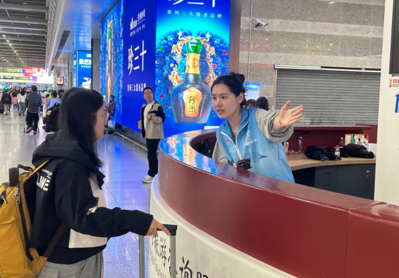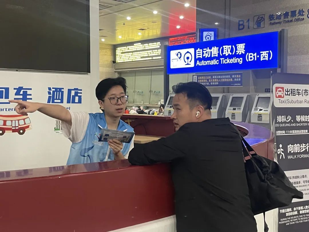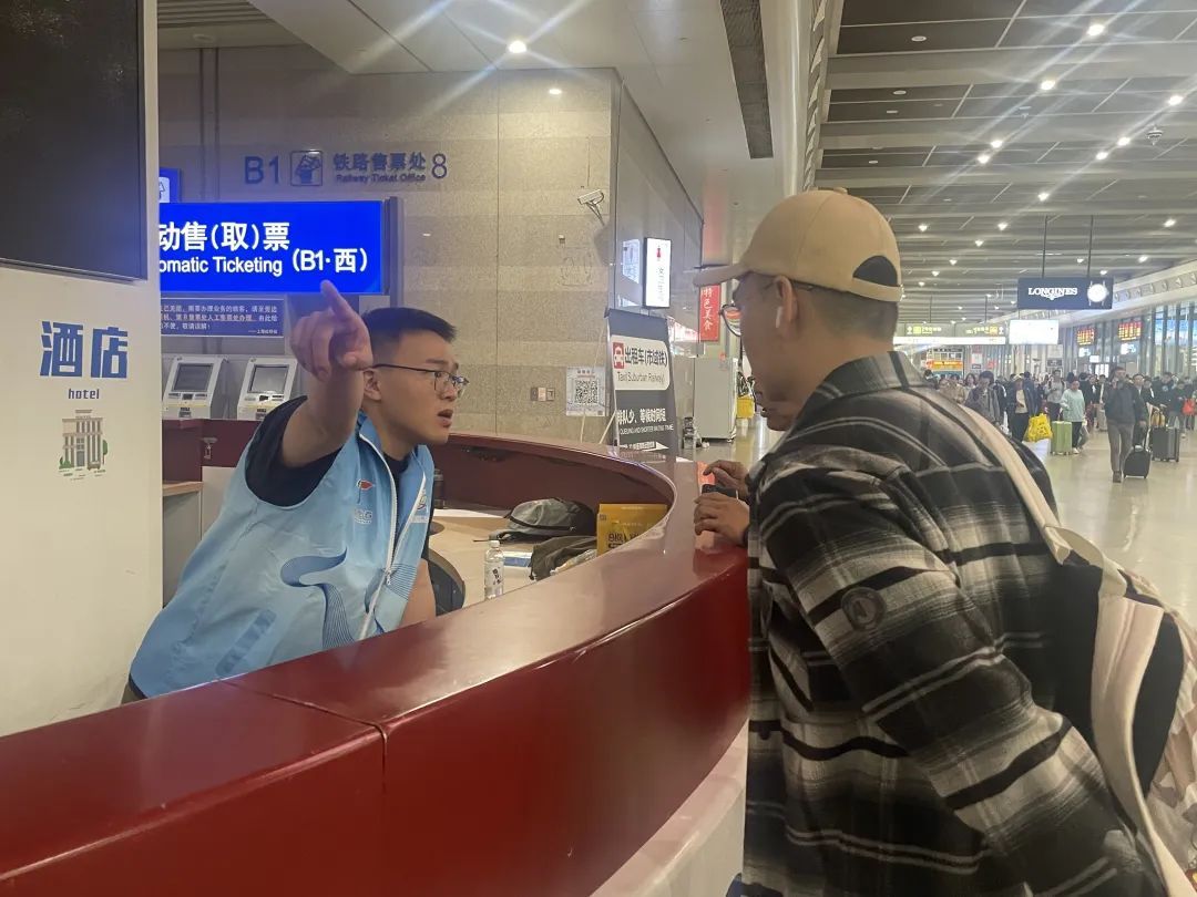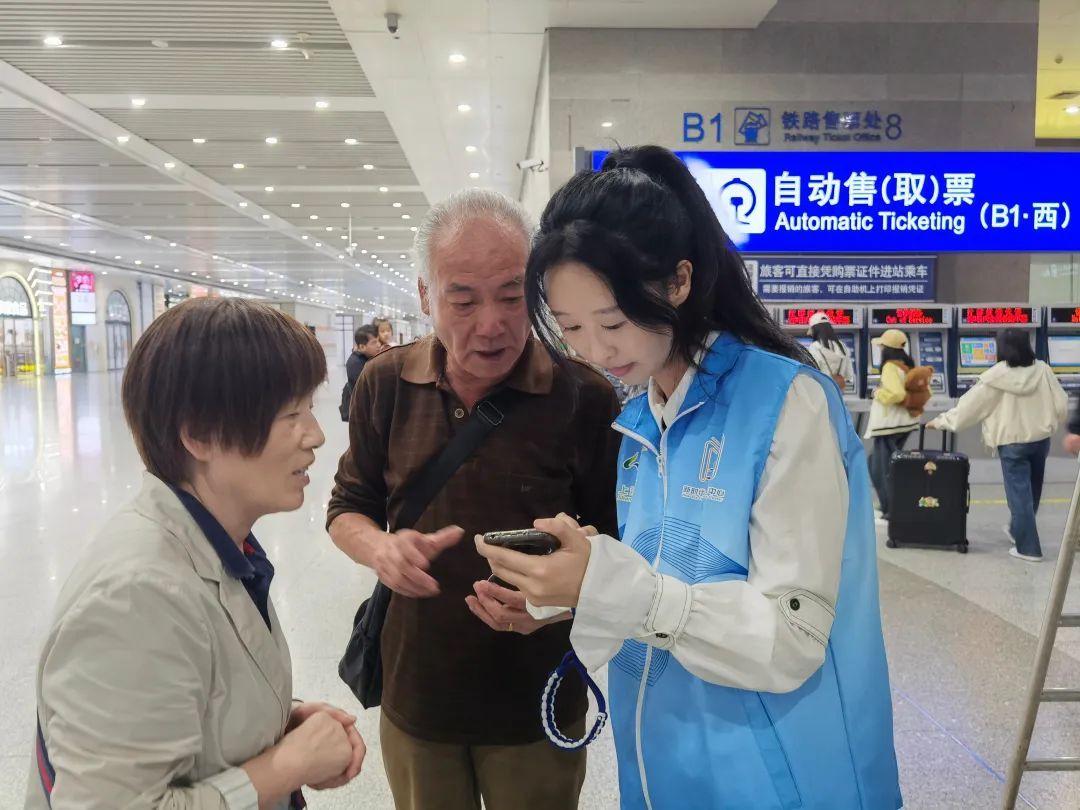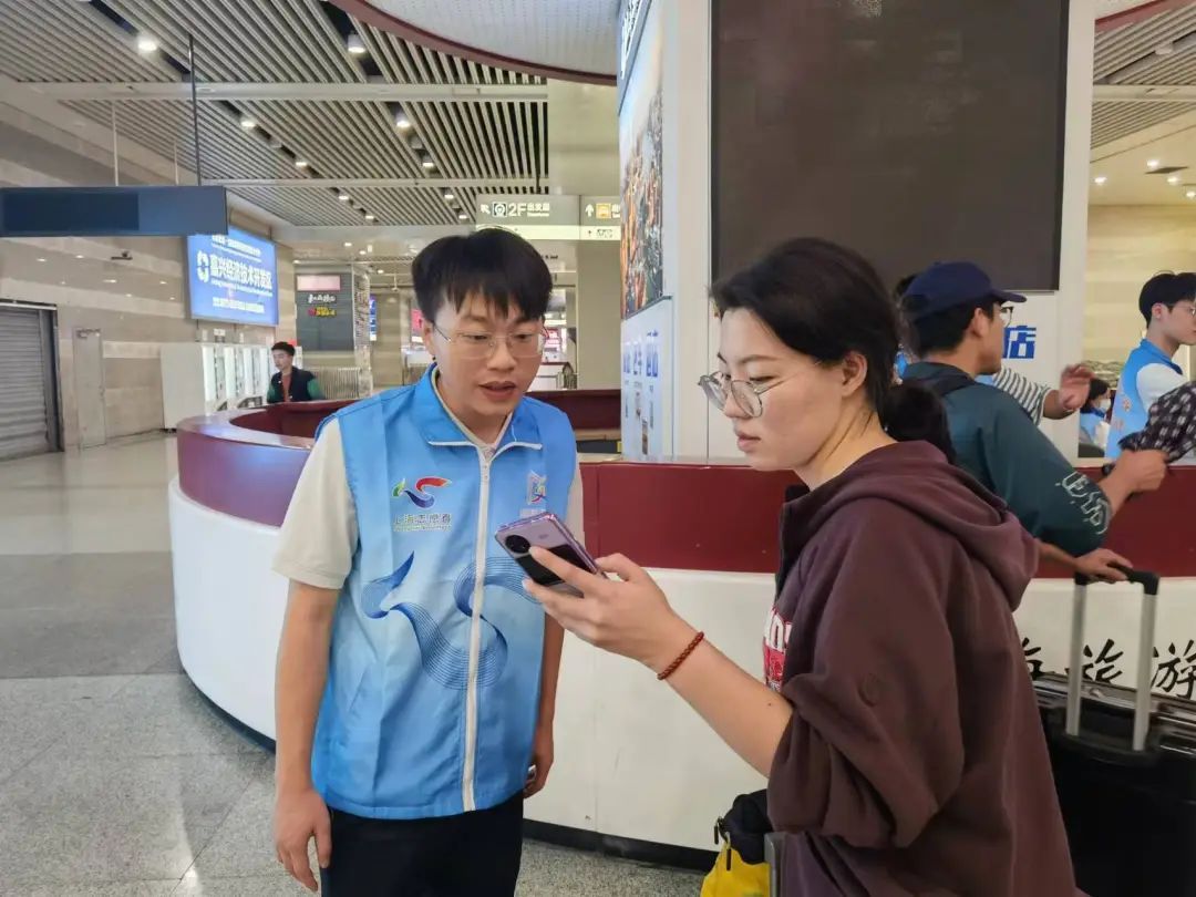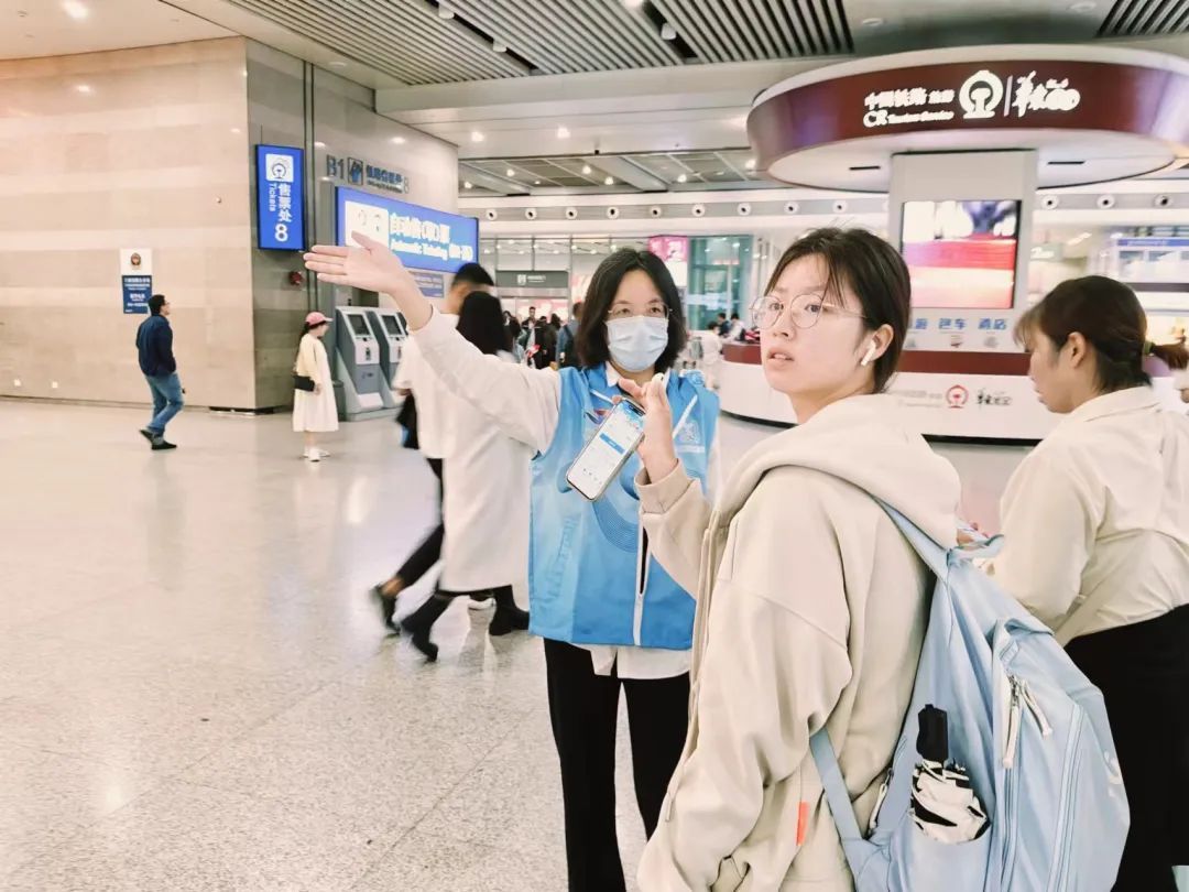 国庆假期接近尾声,然而旅客们归家的脚步依然匆忙不停,车站里熙熙攘攘,不时有旅客前来询问。其中,一位独自赶路的阿姨让我印象深刻。她因丢失地铁卡且手机没电无法继续行程,焦急得眼眶泛泪。见状,我们立刻将提前准备好的充电宝递给她使用,并耐心安抚她的情绪,随后指引她前往失物招领处寻求帮助。当她感激地看着我们时,那一刻,我忽然觉得所有的辛苦和付出都有了非凡的意义。作为一名志愿者,我坚信,我们传递的这份“上海温度”,会伴随每一位旅客一路前行。