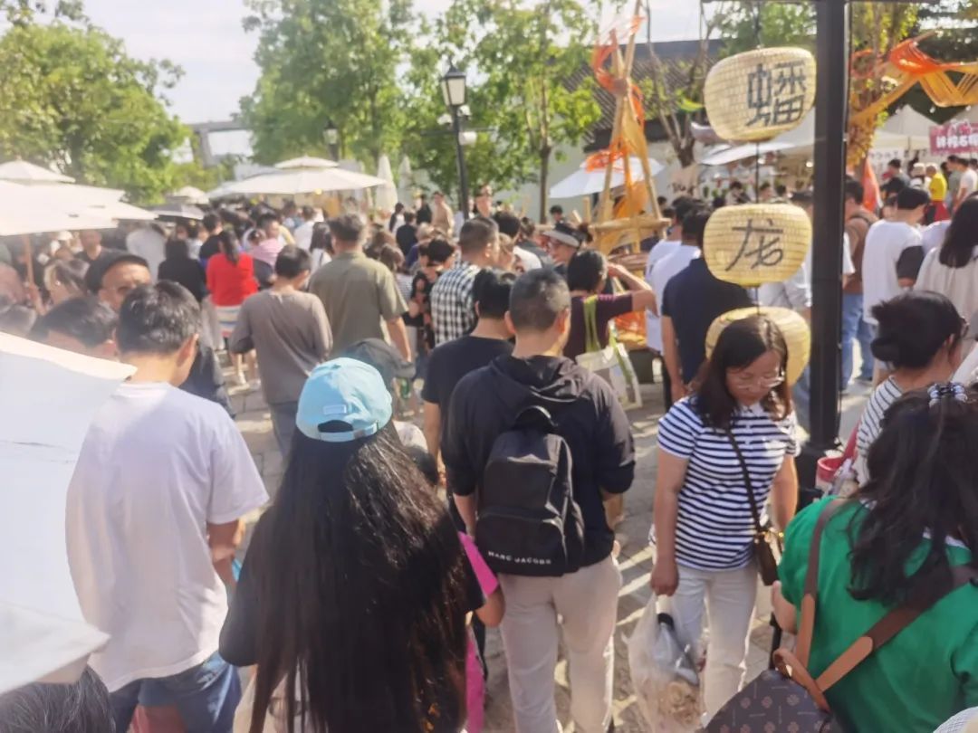 国庆假期前几天天气晴朗、温度适宜,江南韵味十足的蟠龙天地依旧是市民游客打卡的首选地。假日期间,蟠龙天地举行“秋神奇遇”系列活动,利用河道纵横、古香古色的场地,于国庆7日穿插上演戏剧、晒秋、动物聚会等主题活动,实现美学、趣味和商业的有机融合,国庆前期,蟠龙天地10余家新店开门营业,新消费场景激发消费新活力,秋高气爽的蟠龙天地人来人往、游客不断。据统计,假期期间累计吸引客流64.8万人次,居各商圈首位。