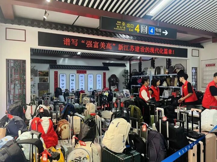 为让游客“甩开胳膊”轻松旅游,江苏多地地铁站还推出行李寄存服务。以苏州为例,国庆期间,除在多个站点放置自助行李寄存柜外,大客流站点如苏州火车站、东方之门站还开设人工行李寄存服务点位。10月1日至4日,苏州地铁线路各站共计服务乘客4000多人次、寄存行李4232件,行李存取无一错漏。苏州地铁还将“文创摊”、汉服体验店铺等开在地铁站里。