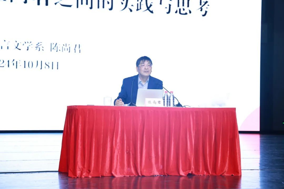 读古文最重要的是知其文气转折,语义顿挫,流转曲折,自成议论。现场,陈尚君诵读韩愈的《送董邵南序》一文,声音浑厚,饱含情感,让师生穿越古今,产生心灵共鸣,理解文章的微言大义。