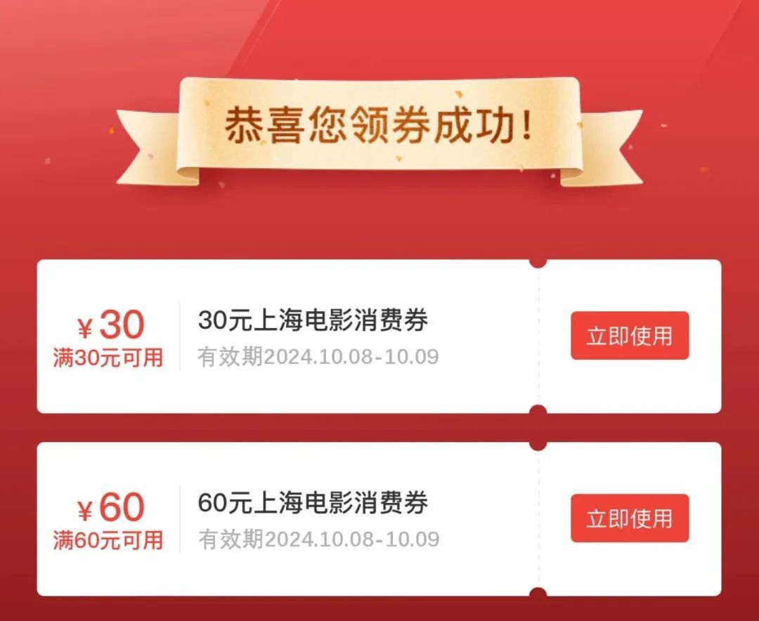 市电影局介绍,2024“乐影上海”电影消费券第二阶段已开启,新阶段领券次数现已重置,国庆假期领过还能领。