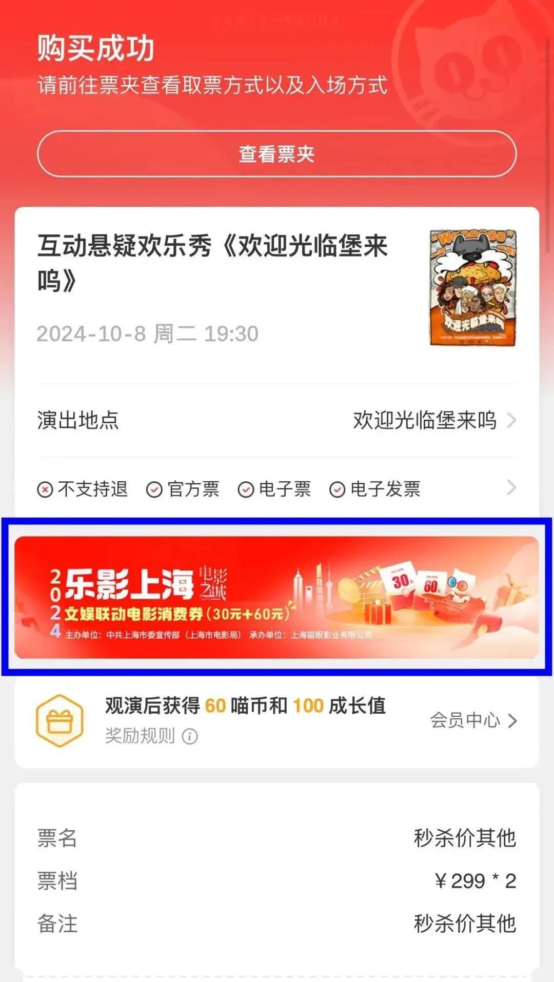 文娱联动类电影消费券领取图示↓