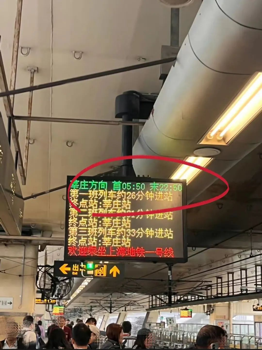 1号线站台上的显示屏上显示