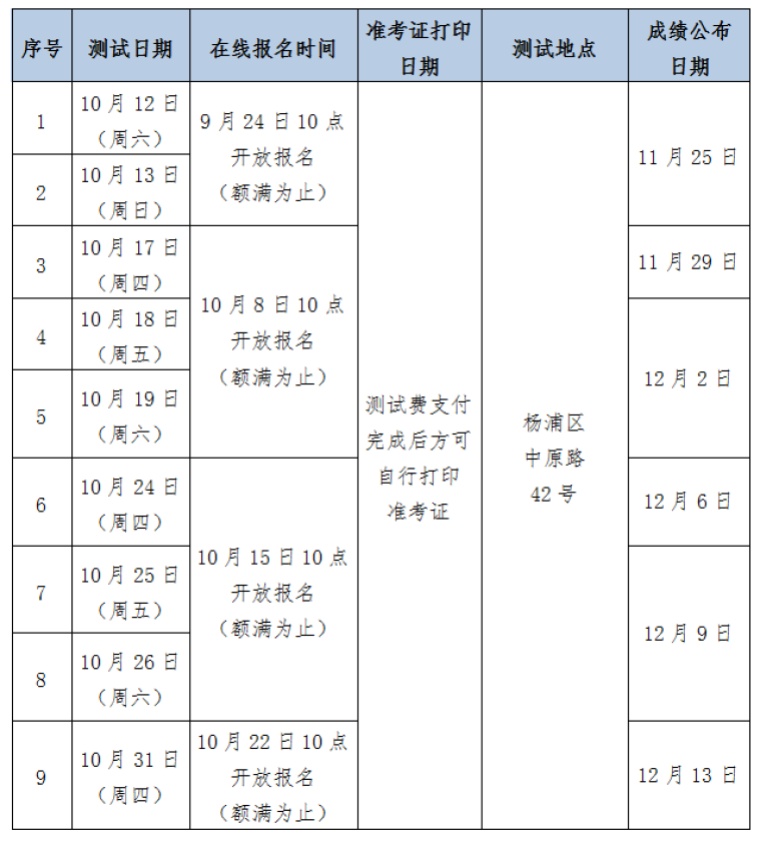 考生提交报名信息后,个人信息及测试日期均不可更改,具体报到时间请以准考证为准。